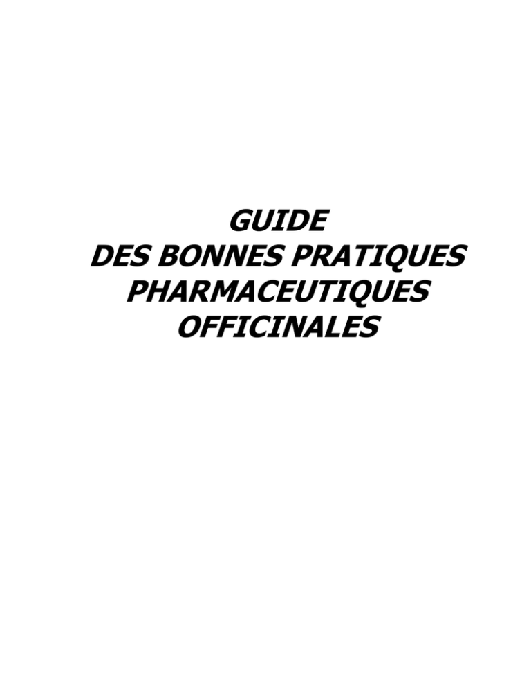 GUIDE DES BONNES PRATIQUES PHARMACEUTIQUES OFFICINALES TABLE DES MATIERES A. INTRODUCTION B. GLOSSAIRE C. PRINCIPES DE BASE D. EXIGENCES DE BASE E. DOMAINES D’APPLICATION F. PRINCIPES ET REGLES GENERALES 1. L’EQUIPE OFFICINALE 2. LES LOCAUX 3. L’EQUIPEMENT 4. L’APPROVISIONNEMENT – LA RECEPTION – LE STOCKAGE ET LA CONSERVATION 5. LES MATIERES PREMIERES 6. LA PREPARATION MAGISTRALE ET OFFICINALE 7. LES SOINS PHARMACEUTIQUES 7.1 7.2 7.3 7.4 8. LES SOINS PHARMACEUTIQUES DE BASE LE SUIVI DES SOINS PHARMACEUTIQUES DISPENSATION DE MEDICAMENTS AUX PERSONNES VIVANT EN COMMUNAUTE LE SERVICE DE GARDE LE TRAITEMENT DES PRODUITS PERIMES ET DES MEDICAMENTS NON UTILISES PAR LES PATIENTS 9. LES PLAINTES 10. LES RETRAITS 11. L’AUTO EVALUATION 12. LA DOCUMENTATION 1 A. INTRODUCTION Tous les pharmaciens sont tenus d’assurer un service de haute qualité. Il est donc essentiel, pour la profession, de promouvoir l’excellence dans l’exercice de la profession au bénéfice de la santé publique. Les bonnes pratiques pharmaceutiques officinales représentent un moyen de traduire ce principe essentiel dans la pratique quotidienne. Les directives internationales relatives aux bonnes pratiques pharmaceutiques officinales recommandent que des normes nationales soient définies pour promouvoir la santé de la population par une amélioration de l’exercice de la profession de pharmacien. L’arrêté royal n° 78 du 10 novembre 1967 relatif à l'exercice des professions des soins de santé prévoit que soient définis des principes et lignes directrices de bonnes pratiques pharmaceutiques officinales couvrant les actes pharmaceutiques que le pharmacien pose dans l’exercice de sa profession. Le présent guide exécute cette exigence. Les utilisateurs le complètent par un manuel de qualité détaillant les instructions de travail, les procédures, les protocoles et les rapports relatifs aux recommandations et aux prescriptions qu’il contient. Ce manuel de qualité satisfait scrupuleusement à toutes les exigences légales et déontologiques en vigueur, et est adapté en fonction de leur évolution. 2 B. GLOSSAIRE Consentement : Un assentiment libre, spécifique et basé sur l’information du patient. Sauf disposition contraire, le consentement ne doit pas être donné par écrit. -Le consentement doit être donné de son plein gré. Le consentement est la manifestation de la volonté du patient qui dispose de toutes ses capacités intellectuelles, exprimée sans aucune forme de contrainte, sociale, financière, psychologique ou d’une autre nature. Le patient a la possibilité de retirer le consentement à tout moment sans risquer de subir de conséquences désavantageuses. - Le consentement doit être spécifique. Le consentement ne peut contenir d'"accord général" relatif à l’enregistrement de l'identité et/ou du transfert des données. Ainsi, un consentement obtenu dans le cadre des Soins Pharmaceutiques de Base pour l'enregistrement des données complémentaires ne peut pas valoir comme autorisation pour l'ouverture d'un dossier dans le cadre du Suivi des Soins Pharmaceutiques. De même, le consentement ne peut pas couvrir le transfert de données en général mais uniquement le transfert à des tiers spécifiques. - Le consentement doit être basé sur l'information. Le consentement basé sur l'information signifie que le patient donne son autorisation sur base de l'appréciation et de la compréhension des faits et des implications d'une manière d'agir. Le patient doit être entièrement et précisément informé de manière claire et compréhensible sur la nature des données à traiter (les données administratives, sensibles et/ou médicales), des destinataires des données éventuellement transmises, et des droits du patient, notamment du droit de retirer son consentement, du droit de regard sur les données et du droit de correction de ses données pour autant que les données aient été fournies directement par le patient. Date limite d’utilisation - Date de péremption - Date limite d’utilisation : date après laquelle un produit dont le conditionnement est entamé ne doit plus être utilisé. - Date de péremption : date, mentionnée sur le conditionnement d’un produit, à partir de laquelle il ne doit plus être utilisé ou consommé. Dispensation : Acte consistant d’une part à délivrer un médicament ou un produit de santé dans le respect des dispositions légales y afférant, et d’autre part à y associer la valeur ajoutée intellectuelle que constituent : - l’analyse pharmaceutique de l’ordonnance médicale ou de la demande du patient ; - la préparation éventuelle des doses à administrer ; - la mise à disposition du patient des informations et des conseils nécessaires au bon usage du médicament ; de façon à assurer efficacité et sécurité pour le patient. Instruction de travail : Document qui décrit la manière dont une opération est effectuée ainsi que les moyens nécessaires pour la mener à bien. Les instructions se distinguent des procédures par le fait qu'en général, elles ne concernent qu'une opération précise, un service, une machine ou une personne. Manuel de qualité : Document spécifiant le système de gestion de la qualité d’une organisation. Médicaments périmés ou non utilisés : 3 Médicaments qui, - dans une pharmacie, ont dépassé la date de péremption indiquée sur leur conditionnement, et ne peuvent donc plus être délivrés. - ont été délivrés à un particulier, et dont ce dernier souhaite se débarrasser, parce qu’ils sont périmés ou qu’il ne souhaite plus les utiliser. Procédure : Description selon un plan logique, cohérent et détaillé, des opérations à effectuer, des mesures à prendre, des moyens techniques et de la documentation à utiliser afin d’assurer de manière reproductible une opération ou une série d’opérations. Autant que possible, les procédures sont exprimées sou