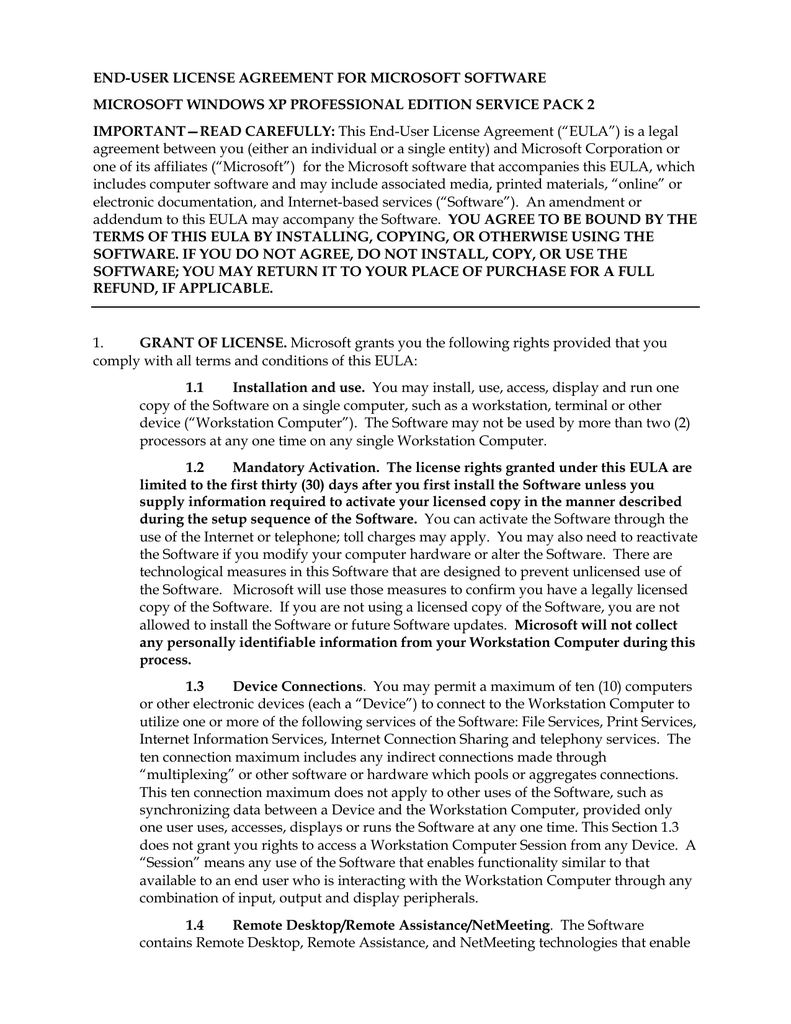 MICROSOFT WINDOWS XP PROFESSIONAL EDITION SERVICE PACK 2