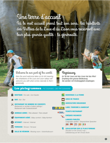 Une terre d’accueil Ici le mot accueil prend tout son sens, les habitants des Vallées de la Loue et du Lison vous recevront avec leur plus grande qualité : la générosité. Welcome to our part of the world Begrüssung Here the word welcome takes on its full meaning, the inhabitants of the Loue and Lison valleys will welcome you with what comes naturally to them : generosity. Im Tal der Loue und des Lison hat das Wort Empfang eine grosse Bedeutung. Sie werden mit Großzügigkeit empfangen. Les pictogrammes / PICTOGRAMS / DIE PIKTOGRAMME BOUTIQUE / For sale / Zum Kaufen BIENVENUE À LA FERME BAR / Bar / Bar LOGIS DE FRANCE AGRICULTURE BIOLOGIQUE RESTAURANT OU NOMBRE DE COUVERTS Restaurant or number of place settings / Restaurant oder Essbesteckzahl LABEL TOURISME & HANDICAP TICKETS RESTAURANT ANIMAUX ADMIS / Pets allowed / Tiere erlaubt CHÈQUES VACANCES ÉQUIPEMENTS BÉBÉ / Baby comfort / Baby Komfort LANGUES PARLÉES Languages spoken / Gesprochene Sprachen INTERNET / Internet / Internet TERRASSE / Terrace / Terrasse SALLE DE RÉUNION / Meeting room / Aufenthaltsraum 1 LOCALISATION SUR LE PLAN D’ORNANS Situation on the Ornans map / Lokalisierung auf der Ornans Karte 1 LOCAL PRODUCTS / LOKAL PRODUKTE Produits d’ici Aubonne (D6) L’ABEILLE DU HAUT-DOUBS Nos producteurs vous accueillent pour vous faire découvrir notre terroir à travers des visites et des dégustations. EN Our producers look forward to welcoming you. They will help you discover our region through a number of visits and tasting sessions. D Unsere Erzeuger aus der Region heissen Sie herzlich willkommen und geben ihnen bei besuchen und kostproben einblicke in unser Terroir. Bonnevaux-le-Prieuré (C4) PISCICULTURE CÔTE Vente et dégustation des produits de la ruche : miel, hydromel, mélomel… Visite commentée de l’exposition ludique pour découvrir le monde fascinant des abeilles : la ruche, ses habitants, leurs travaux… Du 15/04 au 15/10 ouvert tous les jours 9h-18h30 Du 15/10 au 15/04 ouvert du mardi au samedi 9h30-12h/ 14h-18h30. En hiver, téléphoner avant de passer ! La creuse • 03 81 69 93 62 www.abeilleduhautdoubs.fr • [email protected] Foucherans (B4) Truites élevées en eau vive et froide dans la Vallée de la Loue, truite, filet de truite fumée, friture en goujonne2e… FERME DU BOIS DE SANTE De avril à sept. ouvert du lun. au sam. 9h-12h/14h-19h, dim. et jrs. fériés 9h-12h • D’oct. à mars du lun. au sam. 9h-12h/14h-18h La famille Humbert, exploitants agricoles et éleveurs, vous propose de la vente directe de produits fermiers : volailles, lapins, bœuf, veau, porc, charcuterie... Plaisir Fontaine • 03 81 59 20 26 [email protected] Cléron (C3) LE JARDIN DE ZÉLIE Nous vous proposons nos meilleurs légumes en saison et une large gamme de plantons au printemps. Ouvert le samedi 9h-12h de mai à octobre 2 impasse de la fruitière • 06 58 04 20 11 [email protected] Crouzet-Migette (E3) LA SERPOLETTE Ouvert le samedi 9h-12h, visite de la ferme sur RDV Culture de plantes aromatiques et médicinales en bio. Transformations culinaires à base de plantes. Ouvert sur RDV 1 rue du Cul-de-sac • 03 81 49 60 15 http://la-serpolette.fr • [email protected] Route de Bonnevaux • 03 81 86 78 45 / 06 87 55 95 11 www.fermeduboisdesante.fr • [email protected] 61 Produits d’ici LOCAL PRODUCTS / LOKAL PRODUKTE Lavans-Vuillafans (C5) Longeville (D5) FERME DU RONDEAU HAUTE LOUE SALAISONS La Famille Bourdier vous propose différents produits fermiers BIO, depuis 1961 : fromage de chèvre, de vache, charcuteries, farines, pain, légumes et laine Mohair. Possibilité de restauration sur place. Atelier de fabrication artisanale : saucisse de Morteau, jambon du Haut Doubs, charcuteries traditionnelles et biologiques, fumés dans nos tuyés. L’été, pour vos barbecues, toute une gamme de saucisses à griller. Ouvert tous les jours sauf le mardi 10h-12h/17h-18h30, dimanche 10h-12h/15h30-18h Visite gratuite Ouvert toute l’année du lundi au vendredi 9h-12h/14h-17h + le samedi du 1er avril au 30 septembre 9h-12h 03 81 59 25 84 / 03 81 59 26 64 • www.ferme-rondeau.fr [email protected] Route de Fougeris • 03 81 86 43 40 [email protected] Mouthier-Haute-Pierre (D5) Ornans (C4) COULEURS MIEL LE SOIN JARDINÉ Venez découvrir les miels de la Haute Vallée de la Loue et revêtir la vareuse de l’apiculteur pour approcher les abeilles ! Visite guidée sur RDV • 2€/pers. 26 Grande Rue • 03 81 60 94 85 / 06 89 14 35 49 [email protected] LES FROMAGES 18 Culture de plantes à parfum et médicinales. Hydrolats, huiles essentielles, ateliers cosmétiques. Démonstration de distillation les jeudis en juillet et août 14h-16h Visite du jardin d’avril à octobre sur RDV • 3€/pers. 13 rue du stade • 06 23 03 28 90 www.lesoinjardine.fr • [email protected] Cléron (C3) FROMAGERIE JEAN PERRIN Fromagerie familiale depuis 1965. Morbier, Comté, Edel de Cléron et nombreux autres fromages francs-comtois. Dégustation et vente au Hameau du Fromage De juin à août ouvert tous les jours • De septembre à mai ouvert du mardi au dimanche le midi + vendredis et samedis soirs. Zone Artisanale • 03 81 62 41 41 [email protected] • www.jean-perrin.com 62 Chantrans (D4) FROMAGERIE MONNIN Notre entreprise familiale travaille le lait de façon artisanale, conjugue savoir-faire et méthodes de production à la pointe de la technologie. Comté, Morbier, racle3e, beurre, régulièrement médaillés. Ouvert du lundi au samedi 9h-12h/15h-18h30 Échevannes (C5) FRUITIÈRE DES COTEAUX D’ORNANS Fruitière à Comté dont le fromage est affiné à Poligny chez les fromagers Vagnes. Comté, Morbier, racle3e. Venez découvrir la fabrication du célèbre comté lors d’une visite d’une heure sur rdv. Ouvert du lundi au samedi 10h-12h Visite gratuite sur RDV Route d’Ornans • 03 81 86 63 56 [email protected] Grande Rue • 03 81 59 37 29 Épenouse (A6) FROMAGERIE LIECHTI La fromagerie artisanale Liechti propose,