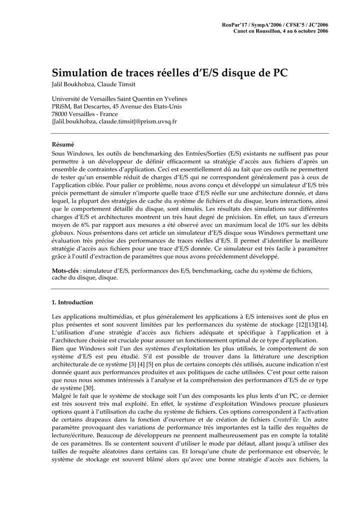 Simulation de traces réelles d`E/S sur PC