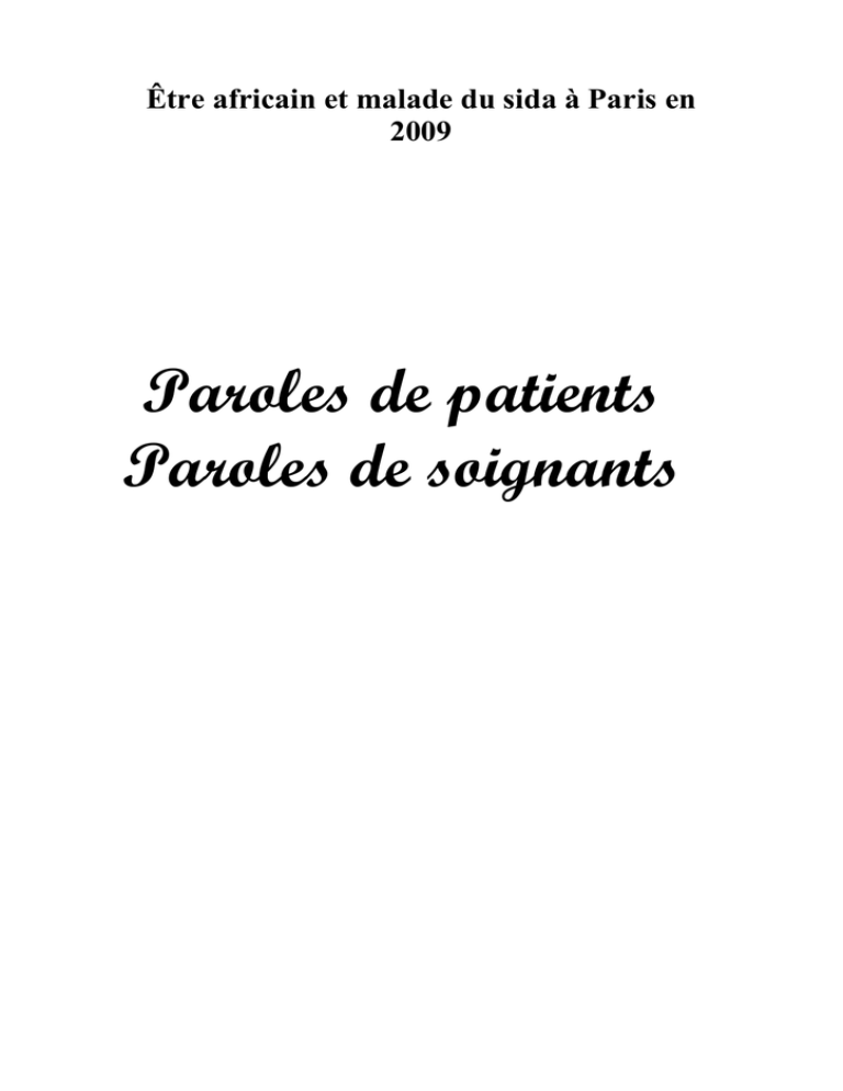 Paroles de patients Paroles de soignants