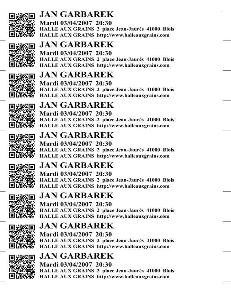 JAN GARBAREK Mardi 03/04/2007 20:30 HALLE AUX GRAINS 2 place Jean-Jaurès 41000 Blois HALLE AUX GRAINS http://www.halleauxgrains.com JAN GARBAREK Mardi 03/04/2007 20:30 HALLE AUX GRAINS 2 place Jean-Jaurès 41000 Blois HALLE AUX GRAINS http://www.halleauxgrains.com JAN GARBAREK Mardi 03/04/2007 20:30 HALLE AUX GRAINS 2 place Jean-Jaurès 41000 Blois HALLE AUX GRAINS http://www.halleauxgrains.com JAN GARBAREK Mardi 03/04/2007 20:30 HALLE AUX GRAINS 2 place Jean-Jaurès 41000 Blois HALLE AUX GRAINS http://www.halleauxgrains.com JAN GARBAREK Mardi 03/04/2007 20:30 HALLE AUX GRAINS 2 place Jean-Jaurès 41000 Blois HALLE AUX GRAINS http://www.halleauxgrains.com JAN GARBAREK Mardi 03/04/2007 20:30 HALLE AUX GRAINS 2 place Jean-Jaurès 41000 Blois HALLE AUX GRAINS http://www.halleauxgrains.com JAN GARBAREK Mardi 03/04/2007 20:30 HALLE AUX GRAINS 2 place Jean-Jaurès 41000 Blois HALLE AUX GRAINS http://www.halleauxgrains.com JAN GARBAREK Mardi 03/04/2007 20:30 HALLE AUX GRAINS 2 place Jean-Jaurès 41000 Blois HALLE AUX GRAINS http://www.halleauxgrains.com JAN GARBAREK Mardi 03/04/2007 20:30 HALLE AUX GRAINS 2 place Jean-Jaurès 41000 Blois HALLE AUX GRAINS http://www.halleauxgrains.com