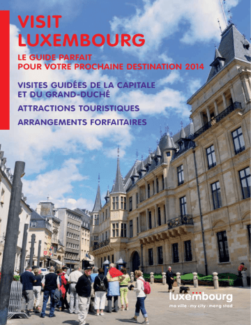 VISIT LUXEMBOURG LE GUIDE PARFAIT POUR VOTRE PROCHAINe Destination 2014 VISITES GUIDÉES DE LA CAPITALE ET DU GRAND-DUCHÉ ATTRACTIONS TOURISTIQUES arrangements forfaitaires Visit Luxembourg 1 Jonas Kaufmann Mariza Découvrez un monde de musiques Saison 2013/14 Philharmonie Luxembourg & Orchestre Philharmonique du Luxembourg Ticketing (+352) 26 32 26 32 www.philharmonie.lu Sir Simon Rattle Vesselina Kasarova Goran Bregović Visit Luxembourg! Soyez les bienvenus! 5 Visites guidées 6 Luxembourg «La capitale» 7 Attractions touristiques «à la carte» 15 Luxembourg «Le pays» 26 Informations pratiques visites guidées 31 • Plan du centre-ville 32 • Plan du Kirchberg et index des rues 33 • Plan des bus 34 • Fiche de réservation et conditions générales de vente visites guidées 35 Arrangements forfaitaires Capitale et Pays 36 Forfaits 1 journée 37 • All in One 37 • Luxembourg by bike 38 • Luxembourg City for Kids 39 • Shopping à Luxembourg 40 • Capitale et région du Mullerthal – «Petite Suisse luxembourgeoise» 41 Forfaits de plusieurs jours 42 • Escapade citadine 42 • Expogast 2014 – Le concours culinaire MONDIAL à ne pas manquer! 43 • Au cœur de l’histoire 44 • Cocooning et bien-être 45 • Week-end de charme 46 • Luxembourg Fête Nationale 47 • Bon prix bons plans 48 • Séjour gourmand 49 • Luxembourg, Metz, Sarrebruck et Trèves… 4 villes, 3 pays, 1 lit 50 Présentation des hôtels partenaires et des tarifs 53 Informations pratiques arrangements forfaitaires 66 • Plan et index des hôtels – centre-ville/gare 67 • Plan et index des hôtels – Kirchberg/environs 68 • Conditions générales de vente arrangements forfaitaires 69 • Où nous trouver 70 Mentions légales: éditeur: Luxembourg City Tourist Office a.s.b.l. N°TVA: LU15621823 – R.C.S. Luxembourg F 754 Conception graphique: binsfeld Crédit photographique: Andrès Lejona, Cathy Giorgetti (LCTO), Christof Weber, Claude Piscitelli (LCTO), Luxembourg City Tourist Office, Martine de Lagardère (LCTO), Musée National d'Histoire et d'Art, natur musée, Office National du Tourisme, Rob Kieffer (éditions Guy Binsfeld) Régie publicitaire: Maison Moderne Media Sales Impression: Imprimerie Centrale/FSC n° C103749/4 000 ex./2013 Visit Luxembourg 3 4 Visit Luxembourg Place Guillaume II (Knuedler) ma ville, my city, Meng stad – Luxembourg SOYEZ LES BIENVENUS! Découvrez la capitale de Luxembourg et laissez-vous époustoufler par cette ville millénaire chargée d’histoire et de trésors tout aussi artistiques que culturels! Une capitale multiculturelle aux nombreuses facettes, où histoire et modernité s’allient parfaitement. Le Luxembourg City Tourist Office vous invite à découvrir la ville de Luxembourg sous ses multiples facettes en vous proposant un choix étonnant d’arrangements forfaitaires très variés pour tous les goûts: des promenades et tours intéressants à la rencontre des richesses touristiques et culturelles du Luxembourg et des visites guidées qui vous dévoileront la capitale du Grand-Duché, en coopération avec ses partenaires, sous un nouveau jour. Profitant de la position centrale de la ville de Luxembourg, le Luxembourg City Tourist Office organise également des circuits touristiques taillés sur mesure à travers tout le pays. VOTRE LUXEMBOURG CITY TOURIST OFFICE Contact CI LUXEMBOURG TY TOURIST O FFICE PA RT M EN T IN CO M IN G DE tours guidés du pa ys s de la vil le et Vi sit es gu id ée ls et grou pe s. po ur in di vid ue 96 -2709 Té l.: (+352) 47 Fa x: (+352) 47 48 18 gu id es@ lct o. lu PA RT M EN IN CO M IN G DE T ys Pac kages la vil le et du pa fo rfa ita ire s de Ar ra ng em en ts ls et grou pe s. po ur in di vid ue Té l.: (+352) 47 96 -4731 48 18 Fa x: (+352) 47 in co m in g@ lct o.lu Visit Luxembourg 5 Visites guidées Contact IS T OF FIC E G CI TY TO UR LU XE M BO UR T PA RT M EN IN CO M IN G DE ÉS ID tours GU 96 -2709 Té l.: (+352) 47 Fa x: (+352) 47 gu id es @ lct o. w w w.lct o.lu 48 18 lu Luxembourg «La capitale» Les visites peuvent être organisées dans les langues suivantes: luxembourgeois, français, allemand, anglais, néerlandais, italien, espagnol, portugais, suédois, norvégien, suisseallemand, hongrois, polonais, russe, ukrainien, estonien, tchèque, japonais, slovaque, visites bi et trilingues. CITY TOUR by day Ce tour de ville classique avec votre propre car d’une durée d’environ deux heures comprend entre autres la visite du quartier de la gare, de la vieille ville, des vestiges de la forteresse, des casemates (facultatif), du Centre européen, du quartier bancaire. INFO Un guide pour maximum 20 personnes. Tarif: 70 € (2 heures). Avec vos propres vélos. Avec location de vélos sur demande: 8, rue Bisserwee, L-1238 Luxembourg Tél.: (+352) 4796-2383, Fax: (+352) 22 27 52, [email protected] Avril à septembre: lundi-vendredi 8h00-12h00 et 13h00-20h00, samedi, dimanche et jours fériés: 10h00-12h00 et 13h00-20h00. Octobre à mars: lundi-vendredi 7h00-15h00, samedi, dimanche et jours fériés: fermé. CITY PROMENADE INFO 1 guide par bus, Tarif: 70 € (2 heures). by night Le soir, vous serez séduit par un tour de ville qui vous fera découvrir les illuminations féeriques de l’ancienne ville-forteresse. Le trajet est le même que celui du tour de ville classique. Il n’est toutefois pas possible de visiter les casemates. INFO by day Ce circuit à pied d’environ deux heures vous fera découvrir en compagnie d’un guide expérimenté plusieurs attraits spécifiques de la ville: la Place d’Armes, la Place de la Constitution, le quartier gouvernemental, la Corniche, le Monument du Millénaire, la vieille ville, le Palais grand-ducal (extérieur), la Place Guillaume II. Les billets ainsi qu’un descriptif du circuit sont disponibles au Luxembourg City Tourist Office. 1 guide par bus, Tarif: 70 € (2 heures). INFO by bike Découvrez en vélo les pittoresques villes basses de Pfaffenthal, Cla