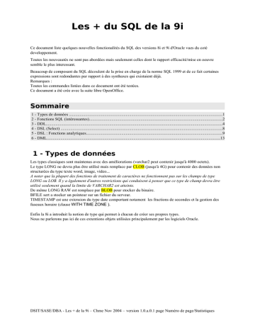 Ce document liste quelques nouvelles fonctionalités du SQL des versions 8i et 9i d'Oracle vues du coté
