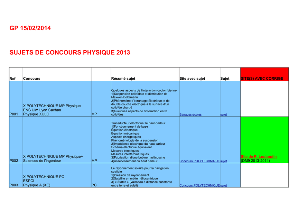 GP 15/02/2014 SUJETS DE CONCOURS PHYSIQUE 2013