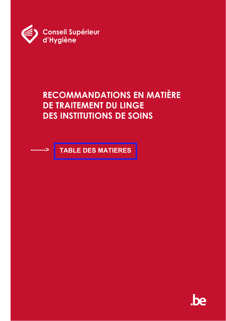 Conseil Supérieur d’Hygiène RECOMMANDATIONS EN MATIÈRE DE TRAITEMENT DU LINGE DES INSTITUTIONS DE SOINS -------> TABLE DES MATIERES Conseil Supérieur d’Hygiène RECOMMANDATIONS EN MATIÈRE DE TRAITEMENT DU LINGE DES INSTITUTIONS DE SOINS Avril 2005 DROITS D’AUTEUR Service public Fédéral de la Santé publique, de la Sécurité de la Chaîne alimentaire et de l’Environnement Conseil Supérieur d’Hygiène Rue de l’Autonomie, 4 B-1070 Bruxelles Tous droits d’auteur réservés. Veuillez citer cette publication de la façon suivante : Conseil Supérieur d’Hygiène. Recommandations en matière de traitement du linge des institutions de soins. Bruxelles, 2005, nr° 8075. Les avis rendus publics ainsi que les brochures peuvent être téléchargés intégralement de la page web : www.health.fgov.be/CSH_HGR. Une version imprimée des brochures peut être obtenue en adressant une demande par courrier, fax ou e-mail à l’adresse susmentionnée. À l’attention de D. Marjaux, local 6.03 Tél : 02 525 09 00 Fax : 02 525 09 77 E-mail : [email protected] Numéro de série Dépôt légal : D/2005/7795/4 N° ISBN : 9076994412 TABLE DES MATIÈRES 3 TABLE DES MATIÈRES 1. INTRODUCTION ET JUSTIFICATION DU DOCUMENT . . . . . . . . . . . . . . . 5 2. INSTITUTIONS CONCERNÉES . . . . . . . . . . . . . . . . . . . . . . . . . . . . . . . . . . . . . . 6 3. LINGE CONCERNÉ . . . . . . . . . . . . . . . . . . . . . . . . . . . . . . . . . . . . . . . . . . . . . . . . . 7 4. DÉFINITION DU TERME “TRAITEMENT DU LINGE” . . . . . . . . . . . . . . . . . 8 5. OBJECTIFS RECHERCHÉS ET CRITÈRES DE QUALITÉ SOUHAITÉS . . . . . . . . . . . . . . . . . . . . . . . . . . . . . . . 10 5.1. Objectifs physiques . . . . . . . . . . . . . . . . . . . . . . . . . . . . . . . . . . . . . . . . . . . 10 5.2. Objectifs chimiques . . . . . . . . . . . . . . . . . . . . . . . . . . . . . . . . . . . . . . . . . . . 11 5.3. Objectifs microbiologiques . . . . . . . . . . . . . . . . . . . . . . . . . . . . . . . . . . . . . 11 6. GUIDE DE BONNES PRATIQUES RELATIVES AU TRAITEMENT DU LINGE . . . . . . . . . . . . . . . . . . . . . . . . . . . . . . . . . . . . . . 12 6.1. Les diverses phases de traitement . . . . . . . . . . . . . . . . . . . . . . . . . . . . . . . 12 6.1.1. Collecte du linge sale . . . . . . . . . . . . . . . . . . . . . . . . . . . . . . . . . . . . . 12 6.1.2. Transport interne et entreposage du linge sale . . . . . . . . . . . . . . . . 13 6.1.3. Transport externe du linge sale. . . . . . . . . . . . . . . . . . . . . . . . . . . . . . 13 6.1.4. Conception de la blanchisserie . . . . . . . . . . . . . . . . . . . . . . . . . . . . . 14 6.1.5. Entreposage et tri du linge sale . . . . . . . . . . . . . . . . . . . . . . . . . . . . . 14 6.1.6. Processus lessiviel . . . . . . . . . . . . . . . . . . . . . . . . . . . . . . . . . . . . . . . . . 14 6.1.7. Processus de finition. . . . . . . . . . . . . . . . . . . . . . . . . . . . . . . . . . . . . . . 15 6.1.8. Entreposage du linge propre à la buanderie et transport du linge propre . . . . . . . . . . . . . . . . . . . . . . . . . . . . . . . . . . 15 6.1.9. Recommandations relatives au bon usage du linge propre . . . . . 15 4 TABLE DES MATIÈRES 6.2. La prise en charge du linge présentant des particularités . . . . . . . . . . . . 16 6.2.1. Linge contaminé . . . . . . . . . . . . . . . . . . . . . . . . . . . . . . . . . . . . . . . . . 16 6.2.2. Linge provenant du bloc opératoire ou assimilé . . . . . . . . . . . . . . . 16 6.2.3. Linge dit “délicat” . . . . . . . . . . . . . . . . . . . . . . . . . . . . . . . . . . . . . . . . 17 6.2.4. Linge destiné aux patients particulièrement fragiles aux infections . . . . . . . . . . . . . . . . . . . . . . . . . . . . . . . . . . . . . . . . . . . . 17 6.2.5. Vêtements des patients hébergés en long séjour . . . . . . . . . . . . . . 17 6.2.6. Textiles utilisés pour l’entretien ménager . . . . . . . . . . . . . . . . . . . . . . 17 6.2.7. Textiles des fenêtres, des séparations de lits . . . . . . . . . . . . . . . . . . . 17 6.2.8. Literie . . . . . . . . . . . . . . . . . . . . . . . . . . . . . . . . . . . . . . . . . . . . . . . . . . . 18 6.2.9. Vêtements de travail du personnel des institutions de soins . . . . . . 18 7. CONTRÔLES . . . . . . . . . . . . . . . . . . . . . . . . . . . . . . . . . . . . . . . . . . . . . . . . . . . . . . 19 7.1. Au niveau de l’institution de soins . . . . . . . . . . . . . . . . . . . . . . . . . . . . . . 19 7.2. Au niveau de la buanderie . . . . . . . . . . . . . . . . . . . . . . . . . . . . . . . . . . . . . 19 8. COMPOSITION DU GROUPE DE TRAVAIL . . . . . . . . . . . . . . . . . . . . . . . . . 24 9. DOCUMENTS DE RÉFÉRENCE . . . . . . . . . . . . . . . . . . . . . . . . . . . . . . . . . . . . . 25 INTRODUCTION ET JUSTIFICATION DU DOCUMENT 5 1. INTRODUCTION ET JUSTIFICATION DU DOCUMENT En juillet 1991, un groupe de travail du Conseil supérieur d’Hygiène, section Hygiène Hospitalière (cf. 8), publiait un document intitulé “Recommandations en matière de traitement du linge hospitalier”. Ce document visait à adapter aux connaissances scientifiques de l’époque la circulaire du 16 février 1984 adressée aux directions des hôpitaux et relative au traitement du linge hospitalier. Ce document avait pour but de permettre au Comité d’Hygiène Hospitalière de chacun des établissements de soins d’élaborer une politique en matière de linge hospitalier, tel que mentionné dans l’Arrêté Royal du 7 novembre 1988 relatif à l’hygiène hospitalière. Depuis la parution du document de 1991, on peut constater : — une évolution importante des textiles et des textures (remplacement du coton par du polyester-coton, apparition de nouvelles fibres…); — une évolution des méthodes de lavage du linge (produits lessiviels et technologies); — une diminution des petites structures de soins en faveur de regroupemen