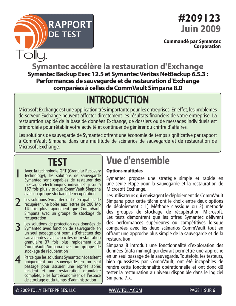 COMPARATIF DES SOLUTIONS DE SAUVEGARDE EXCHANGE DE SYMANTEC ET COMMVAULT #209123