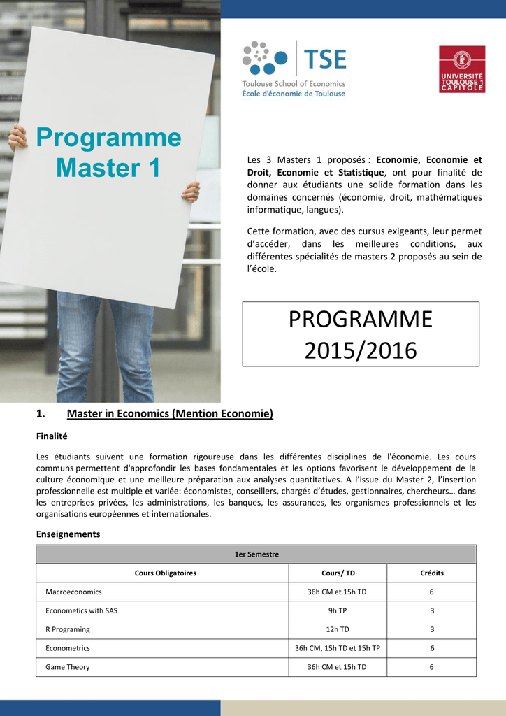 Programme Master 1 - L`École d`économie de Toulouse