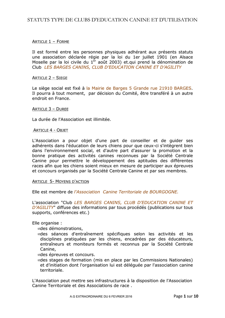 statuts type de clubs d`education canine et d`utilisation