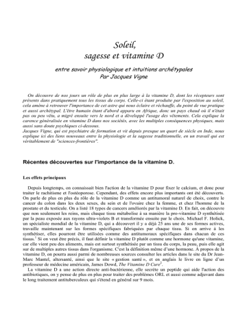 vitamine D, on pourra aussi parmi de nombreuses sources consulter les articles dans le site du Dr JeanMarc Mantel, altersanté, ainsi que le site « gestion santé », et en anglais le livre en ligne d’un