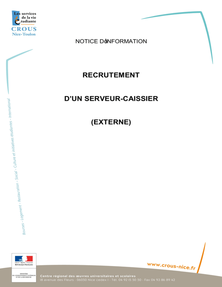 recrutement d`un serveur-caissier (externe) - Crous de Nice
