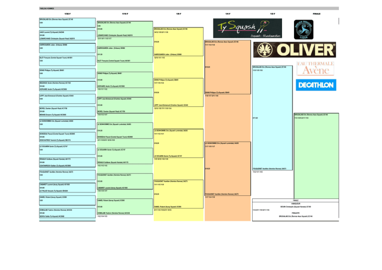 Tableau Hommes 1 à 32 - Association Squash Hermine Rennes