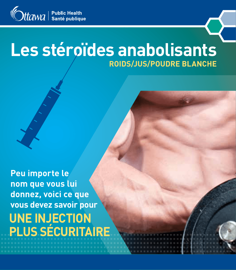 Les stéroïdes anabolisants ROIDS/JUS/POUDRE BLANCHE Peu importe le nom que vous lui donnez, voici ce que vous devez savoir pour UNE INJECTION PLUS SÉCURITAIRE 1 Ta b l e d e s m at i è r e s Si vous utilisez des stéroïdes ou envisagez d’en prendre, vous pourrez réduire les risques pour votre santé en vous renseignant adéquatement. Dans le présent document, vous trouverez de l’information sur la réduction des risques liés à l’utilisation de stéroïdes, sur des méthodes d’injection plus sécuritaires, sur le matériel nécessaire et sur les effets secondaires possibles liés aux stéroïdes. Vous y apprendrez également ce qu’il faut savoir sur le VIH et l’hépatite si vous utilisez des stéroïdes par injection. Qu’est-ce que les stéroïdes anabolisants? 2 Dépendance 2 Effets secondaires 3 4 Les choses peuvent mal tourner si l’injection n’est pas faite correctement, si le matériel d’injection est partagé ou si les stéroïdes sont contaminés. Vous pouvez réduire les risques en suivant les conseils sur la réduction des méfaits et l’injection plus sécuritaire contenus dans la présente brochure. S’informer sur la substance 5 Matériel 6 Les cinq principaux messages à l’intention des utilisateurs de stéroïdes : ❱ Utilisez votre propre matériel stérile chaque fois que vous vous faites une injection. Possibles effets indésirables L’injection plus sécuritaire Préparation 8 Aspiration de la solution d’une ampoule ou d’une fiole 8 Avant l’injection 9 ❱ Planifiez à l’avance : procurez-vous du matériel d’injection et des aiguilles stériles auprès de votre programme local d’échange d’aiguilles et de seringues. À quel endroit faire l’injection? 10 Étapes d’une injection plus sécuritaire 13 Après l’injection 14 ❱ Faites l’injection correctement et au bon endroit. Risques 15 Hépatite 16 VIH 18 ❱ Jetez les aiguilles souillées de manière sécuritaire. ❱ Passez régulièrement un examen médical et soyez au fait des effets indésirables à surveiller. Des lois régissent l’usage de drogues pour améliorer la performance. Dans certains cas, des stéroïdes peuvent être prescrits par un médecin pour traiter un trouble de santé particulier. Le présent document ne contient pas de renseignements sur les dispositions de la loi canadienne en ce qui concerne les stéroïdes. 2 3 Qu’est-ce que les stéroïdes anabolisants? Les stéroïdes anabolisants sont des substances synthétiques conçues pour imiter l’effet dans l’organisme d’hormones naturelles, la testostérone et la dihydrotestostérone, qui permettent d’accroître la masse musculaire. La testostérone est l’hormone naturellement responsable des changements de la pilosité faciale, de la gravité de la voix, de la libido et du développement du pénis et des testicules. Les stéroïdes anabolisants stimulent le développement des muscles pour augmenter la force et la masse musculaire. Il existe plusieurs types et marques de stéroïdes, que ce soit sous forme de comprimés ou de liquide à injecter. En général, l’utilisation de stéroïdes se fait de façon cyclique (la période d’utilisation) suivi d’une période de repos pour donner à l’organisme le temps de s’adapter et de guérir. La durée des cycles et des périodes de repos dépend de la substance utilisée, de la dose et de la réaction de l’organisme. De nombreuses raisons motivent les gens à utiliser des stéroïdes anabolisants : ❱ augmentation de l’énergie ❱ diminution du taux de gras corporel ❱ amélioration de la performance sportive ❱ amélioration de l’image corporelle ❱ augmentation de la force et de la masse musculaire ❱ pression des pairs Dépendance Certaines personnes peuvent développer une dépendance psychologique aux stéroïdes et subir des symptômes de sevrage lorsqu’elles cessent d’en utiliser. Parmi ces symptômes, notons des sautes d’humeur; une baisse de la libido; de la dépression; des nausées; des maux de tête; de la transpiration excessive; de la fatigue et de l’anxiété. Si vous croyez acquérir une dépendance des stéroïdes, parlez-en ouvertement à un fournisseur de soins de santé. Effets secondaires Tous les médicaments ont le potentiel de causer des effets secondaires, et il en va de même des stéroïdes anabolisants. L’utilisation de stéroïdes peut d’ailleurs provoquer nombre d’effets indésirables et se répercuter différemment sur chaque utilisateur. Faites vos recherches : certains stéroïdes réagissent mal lorsqu’ils sont combinés; d’autres ne sont pas conçus pour être utilisés par l’humain. Il est important de passer régulièrement un examen médical (auprès d’un médecin ou d’un infirmier praticien) : certains effets secondaires peuvent être dangereux et leurs symptômes, difficiles à détecter. De façon générale, plus la dose est élevée, plus le risque d’effets secondaires est important. Bien qu’il puisse être difficile d’aborder le sujet avec votre fournisseur de soins de santé, une communication ouverte et honnête est essentielle pour votre bien-être. Lorsque vous vous sentirez à l’aise de le faire, parlez de votre utilisation de stéroïdes avec votre fournisseur de soins. Ce dernier pourra vous aider à faire le suivi de votre état de santé ainsi qu’à réduire ou à prendre en charge certains des effets secondaires indésirables. Avant le début d’un cycle de prise de stéroïdes, il est souhaitable de subir une analyse sanguine et un électrocardiogramme (un examen rapide et sans douleur du fonctionnement du cœur). Vous devriez également subir un examen médical après le cycle d’utilisation pour vérifier si votre corps se remet bien. 4 5 Possibles effets indésirables S’informer sur la substance ❱ perte de cheveux ❱ acné sur le visage, le dos, la poitrine et les épaules Aucun stéroïde acheté en ligne ou sur la rue 