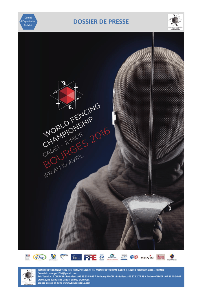 Comité d’Organisation COMEB DOSSIER DE PRESSE COMITÉ D’ORGANISATION DES CHAMPIONNATS DU MONDE D’ESCRIME CADET / JUNIOR BOURGES 2016 - COMEB Courriel : [email protected] Tél: Yannick LE CLEAC’H - Président : 06 83 33 83 45 / Anthony PINON - Président : 06 87 82 77 99 / Audrey OLIVER : 07 81 40 36 44 COMEB, 83 avenue de Vogue, 18 000 BOURGES Espace presse en ligne : www.bourges2016.com Comité d’Organisation COMEB DOSSIER DE PRESSE COMITÉ D’ORGANISATION DES CHAMPIONNATS DU MONDE D’ESCRIME CADET / JUNIOR BOURGES 2016 - COMEB Courriel : [email protected] Tél: Yannick LE CLEAC’H - Président : 06 83 33 83 45 / Anthony PINON - Président : 06 87 82 77 99 / Audrey OLIVER : 07 81 40 36 44 COMEB, 83 avenue de Vogue, 18 000 BOURGES Espace presse en ligne : www.bourges2016.com Comité d’Organisation COMEB DOSSIER DE PRESSE SOMMAIRE I. Les Championnats du Monde d’Escrime cadet / Junior II. La candidature du Comité d’Organisation III. Le soutien des collectivités locales et du secteur privé IV. Lieux de compétition CREPS et Palais des Sports du Prado V. La compétition VI. Créateur de richesses VII. Accueil et valorisation du territoire VIII. Une communication globale IX. Une organisation bénévole X. Je rêve des Jeux – Paris 2024 COMITÉ D’ORGANISATION DES CHAMPIONNATS DU MONDE D’ESCRIME CADET / JUNIOR BOURGES 2016 - COMEB Courriel : [email protected] Tél: Yannick LE CLEAC’H - Président : 06 83 33 83 45 / Anthony PINON - Président : 06 87 82 77 99 / Audrey OLIVER : 07 81 40 36 44 COMEB, 83 avenue de Vogue, 18 000 BOURGES Espace presse en ligne : www.bourges2016.com 1 Comité d’Organisation COMEB DOSSIER DE PRESSE LES CHAMPIONNATS DU MONDE D’ESCRIME CADET / JUNIOR BOURGES 2016 Le Comité d’Organisation est fier de vous présenter les Championnats du monde d’escrime cadet / junior qui se dérouleront à Bourges du vendredi 1er au dimanche 10 avril 2016. Pour la première fois des championnats du monde d’un sport olympique sont organisés en Région Centre Val-de-Loire. LES CHAMPIONNATS DU MONDE D’ESCRIME CADET / JUNIOR c’est : - 10 jours de compétition - 1500 athlètes du monde entier - Entre 120 et représentées 150 nations - Trois armes : épée, fleuret et sabre - Compétition masculine / féminine - 2 catégories : cadet (16-17 ans) et junior (19-20 ans) - Un budget de 450 000€ - Environ 200 bénévoles Concourir à l’organisation des Championnats du monde d’escrime cadet / junior Bourges 2016 compte parmi les défis les plus importants. La ville de Bourges offre tous les atouts exigés par le cahier des charges très complexe de la Fédération Internationale d’Escrime pour l’organisation technique des épreuves de ces championnats. Elle dispose ainsi des infrastructures de transport, d’accueil et d’hébergement indispensables à l’accueil d’une manifestation internationale de cette envergure. Mais plus encore, l’ancienne Avaricum bénéficie des équipements dignes des grandes métropoles qui ont accueilli ces championnats par le passé et qui promettent une compétition sportive de qualité. Accompagné de la Fédération Internationale d’Escrime, des collectivités locales, d’institutions, d’entreprises du secteur privé et de mécènes, le Comité d’organisation des Championnats du monde d’escrime cadet / Junior Bourges 2016 (COMEB) relève le défi d’une organisation sportive inédite à Bourges. Le Comité d’Organisation, présidé par Yannick LE CLEAC’H et Anthony PINON n’en est pas à son coup d’essai. En effet, c’est fort de deux précédents succès que sont les Championnats d’Europe Seniors en 2003 et les Championnats d’Europe juniors en 2009 que l’équipe de passionnés s’engage de nouveau à faire rayonner le Berry sur la scène internationale ! COMITÉ D’ORGANISATION DES CHAMPIONNATS DU MONDE D’ESCRIME CADET / JUNIOR BOURGES 2016 - COMEB Courriel : [email protected] Tél: Yannick LE CLEAC’H - Président : 06 83 33 83 45 / Anthony PINON - Président : 06 87 82 77 99 / Audrey OLIVER : 07 81 40 36 44 COMEB, 83 avenue de Vogue, 18 000 BOURGES Espace presse en ligne : www.bourges2016.com 2 Comité d’Organisation COMEB DOSSIER DE PRESSE BOURGES, CANDIDATE POUR L’ACCUEIL DES CHAMPIONNATS DU MONDE D’ESCRIME CADET / JUNIOR DE 2016 Le Comité d’Organisation des Championnats du monde d’escrime cadet / junior 2016 (COMEB) a défendu la candidature de Bourges devant la Fédération Internationale d’Escrime en mars 2014 qui a été validée par une très grande majorité. LES ÉTAPES DE LA CANDIDATURE DE BOURGES : - Mai - juillet 2014 : étude de faisabilité - Juillet - novembre 2014 : construction du Fort de la réussite des championnats d’Europe cadets en 2009 et championnats d’Europe seniors en 2003, le Comité d’Organisation relève le défi de permettre à des délégations du monde entier de se déplacer et de venir découvrir le Berry! S’appuyant sur un mouvement sportif dynamique et professionnel, à travers l’implication des différents clubs d’escrime et l’engagement de nombreux bénévoles, la Région Centre représente 626 623 licenciés répartis dans quelques 7 900 associations (dont 1 060 emploient du personnel). Près de 100 000 bénévoles interviennent en club soit près de 18 millions d’heures de bénévolat valorisées à hauteur de 2 milliards d’euros. dossier de candidature avec la Fédération Française d’Escrime - Novembre 2014: la France et Bourges désignés par le congrès de la Fédération internationale à Rome - 15 janvier 2015 : création du COMEB Le Comité d’Organisation contribue à affirmer le positionnement du Berry dans l’accueil et l’organisation d’événements de grande envergure en proposant aux jeunes champions du monde de l’escrime de s’affronter dans des infrastructures modernes et de grande qualité en leur assurant un accueil optimal. Empreint des valeurs du monde du sport et fort d’une 
