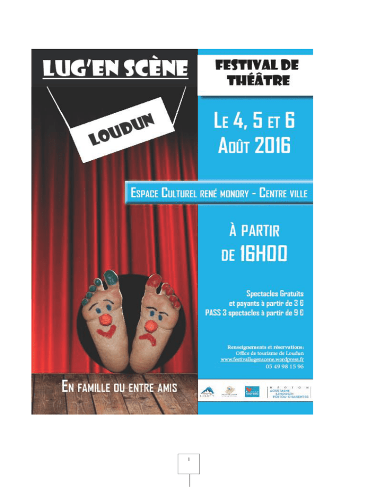 1 SOMMAIRE Le festival page 3 et 4 Compagnie Alborada page 5 Compagnie BLAST page 6 Compagnie La Belle aventure et Théâtre de la Reine Blanche page 7 Compagnie Framboise et Roland Geairon page 8 Compagnie Manège carré page 9 Compagnie Extravague page 10 La Fatal Compagnie page 11 La Compagnie Le Theatro page 12 Médiation et stages de Théâtre page 13 et 14 Programme Festival page 15 2 LE FESTIVAL- Lug’en Scène Pourquoi « Lug ‘en scène » : L’ancien nom de Loudun est "Lugdunum", nom gallo-romain d'origine celtique. Ce nom fait référence au dieu gaulois « Lug, Lugdunum : le Dieu « Lumière », qui habite sur des hauteurs. Ainsi le Dieu Lug est souvent rattaché à des villes situées sur des collines comme Loudun. Lugus étant une divinité solaire et de la lumière, Dun est un toponyme ou un élément de toponyme courant dans les régions d'ancien peuplement celtique. Il signifie à l'origine citadelle, forteresse, enceinte fortifiée, puis secondairement colline, mont. « Lug’en Scène », fait donc référence à l’origine de Loudun et au théâtre. 3 Quel est le propos artistique ? Afin de créer une émulation, une curiosité, une rencontre, la programmation du festival s’est donc construite autour de spectacles amateurs et professionnels. Ces choix permettent de favoriser les découvertes des pratiques locales des compagnies amateurs mais aussi des pratiques professionnelles de la région. Le public pourra découvrir des formes de théâtre interactif et participatif, du théâtre de rue et du théâtre de salle. Le spectateur aura une place privilégiée dans chaque spectacle car la proximité entre l’artiste et son public sera mise à l’honneur. Les troupes amateurs et professionnelles du territoire seront ainsi mobilisées. LUG’EN SCENE espère plaire aux petits comme aux grands qui pourront partager des moments de plaisir et de découverte. Quelle Médiation ? Pour attirer et fédérer la population locale, des actions de médiation seront proposées. Ces actions de médiation seront l’occasion de créer le lien entre amateurs et professionnels. Il s’agit de sensibiliser le public au théâtre et habituer les jeunes à se déplacer dans les lieux culturels. Dans ce but, il est proposé d’organiser deux périodes de stages, l’un pour les Jeunes adolescents, fin juillet, à l’espace jeunes. Afin de proposer une « activité théâtre ». Ces stages seront dirigés par une équipe professionnelle : la Compagnie Extravague et aboutiront à une représentation finale sur le thème « Improvisation et boniments” avec un travail de la voix, l’improvisation verbale, l’expression du corps, la prise de parole en public, et la maîtrise de la respiration, Un second stage début aout serait proposé par la Compagnie Framboise sur l’absurde dans les textes de Molière. 4 COMPAGNIE ALBORADA La Compagnie professionnelle de théâtre Alborada a été créée en 2004. L'originalité de ses spectacles et productions se caractérise par des scénarios, musiques et dialogues entièrement écrits et conçus par les auteurs de la Compagnie : Nathalie Barbelivien et Paul-Etienne Treffé. Depuis 2005, la Compagnie s'est spécialisée dans la création de spectacles inédits dans le cadre de visites patrimoniales. Du théâtre de rue qui a pour but de surprendre, émouvoir et faire rire par une mise en scène insolite et décalée. Chaque visite théâtralisée est entièrement adaptée aux lieux. Que ce soit accompagnés d'un guide assermenté ou sans, les comédiens racontent une histoire, plongent les spectateurs dans différentes époques, évoquent des figures historiques majeures ou des anecdotes palpitantes. La Vit’Visite La Vit'Visite, une vision satirique du produit surfait et vite consommé par un public toujours plus pressé ayant adopté le mode de vie du zapping télévisuel. Les comédiens incarnent des guides, reprennent et détournent, avec humour, les codes d'une visite guidée traditionnelle. Se succèdent entre autres les pseudo-blagues pédagogico-patrimoniales, les « jeux-bonus » avec cadeau surprise à la clef et les séquences « Le Patrimoine vous parle ! ». Néanmoins, sous cette apparente forme légère et insolite, les éléments d'un vrai discours patrimonial et historique sont transmis tout au long de la visite : origines de la ville, mise en valeur des monuments phares, personnages importants qui ont contribué à sa renommée. Chaque moment est ainsi l'occasion de rappeler une anecdote historique, de souligner un détail architectural et historique de la ville. Les séquences « Le Patrimoine vous parle » sont, avec des chants, des danses, des lectures de poèmes et de textes, des dialogues, autant de manières d'attirer l'attention du visiteur sur l'histoire de la ville. 5 Crédit photo : Compagnie Alborada COMPAGNIE BLAST La Compagnie BLAST La compagnie BLAST La Compagnie Blast s'est installée à Mouterre-Silly dans le département de la Vienne en Août 2015. Elle s'attache à créer un théâtre audacieux, exigeant et à l'image du monde dans lequel nous vivons. Elle produira sur l'été 2016 Les caprices de Marianne d'Alfred de Musset. Puis courant 2016 la pièce Epouvantails, un drame rural écrit par Arthur Schmidt-Guézennec sera proposée au public. L'action culturelle L'action culturelle a pour vocation de faire partie intégrante de la vie de la compagnie. Elle est un espace de transmission, de partage et de rencontre avec le public constitué et à venir du territoire. Nous favorisons le dialogue avec les institutions référentes pour penser des interventions spécifiques et adaptées au public et au contexte donné. Pour permettre la naissance de projets créatifs et innovants. « Les Caprices de Marianne» (extrait) « C'est carnaval. Ils sont riches, ils sont beaux, ils sont jeunes et ils s'ennuient » Coelio et Octave n'ont pas de sens à leur vie jusqu'à ce qu'ils rencontrent Marianne... Découvrez le