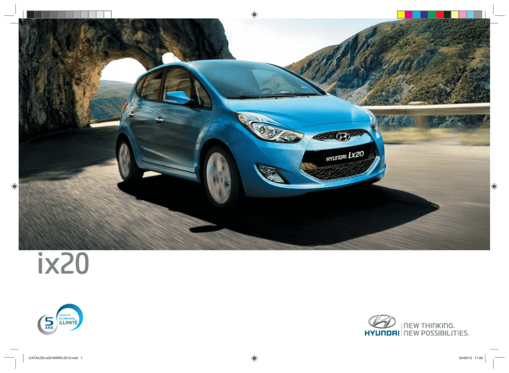 ix20 CATALOG-ix20-MARS-2013.indd 1 24/09/13 11:06 QUI A DIT QUE VOUS DEVIEZ TRAVAILLER JUSQU’A 18H ? OU 65 ANS ? LE SUCCES NAIT-IL A L’UNIVERSITE OU EN BRICOLANT DANS SON GARAGE ? QUI A DIT QU’UNE VOITURE FAMILIALE NE POUVAIT PAS ETRE DYNAMIQUE ? LA TECHNOLOGIE PEUT-ELLE ETRE INTUITIVE ? ET LA PUISSANCE DOCILE ? AUJOURD’HUI, LES ANCIENNES REGLES NE COMPTENT PLUS, LES CATEGORIES SONT BOULEVERSEES. ALORS, POURQUOI PASSER SA VIE DANS UNE BOITE ? NOUVEAU HYUNDAI CATALOG-ix20-MARS-2013.indd 2 24/09/13 11:06 Jantes 17" disponibles en accessoire CATALOG-ix20-MARS-2013.indd 3 24/09/13 11:06 Jantes 17" disponibles en accessoire CATALOG-ix20-MARS-2013.indd 4 24/09/13 11:06 Pour vous assurer de profiter pleinement de votre ix20 kilomètre après kilomètre, chaque ix20 est couvert par notre garantie Triple 5. Cette garantie vous assure une parfaite tranquillité d’esprit durant 5 ans, sans limite de kilométrage. Nous CATALOG-ix20-MARS-2013.indd 5 vous garantissons également une assistance sur la même période ainsi qu’un contrôle intermédiaire gratuit des principaux éléments mécaniques et de sécurité. Vous verrez, la vie est beaucoup plus sereine avec notre programme Triple 5. 24/09/13 11:06 PRÉPAREZ-VOUS À VOIR LA VIE SOUS UN NOUVEL ANGLE. CATALOG-ix20-MARS-2013.indd 6 24/09/13 11:06 CATALOG-ix20-MARS-2013.indd 7 24/09/13 11:07 CATALOG-ix20-MARS-2013.indd 8 24/09/13 11:07 LA TECHNOLOGIE PEUT-ELLE ÊTRE INTUITIVE ? CATALOG-ix20-MARS-2013.indd 9 24/09/13 11:07 ET SI L’EXTÉRIEUR SE PROLONGEAIT À L’INTÉR CATALOG-ix20-MARS-2013.indd 10 24/09/13 11:07 TÉRIEUR… Avec le nouveau ix20, vous pouvez réellement tout avoir. Ce minispace étonnant est un expert pour créer une atmosphère hors du commun. Son toit panoramique* offre la meilleure sensation qui soit pour tous les passagers, à l’avant comme à l’arrière grâce à ses dimensions impressionnantes. Chacun peut profiter du paysage et de la luminosité qu’il apporte. Et pour prendre un peu l’air, la partie avant du toit s’entrebâille ou coulisse en un seul geste. Ce sont ces idées intelligentes qui transforment chaque voyage à bord d’ix20 en un spectacle resplendissant. *Selon versions CATALOG-ix20-MARS-2013.indd 11 24/09/13 11:07 CATALOG-ix20-MARS-2013.indd 12 24/09/13 11:07 Tout le confort de la maison. Sur la route. Fini le temps où une voiture vous transportait uniquement d’un point A à un point B. Aujourd’hui et avec ix20, vous pouvez vous attendre à plus d’attention, à plus de possibilités durant tout votre voyage. La console centrale est la clé de cette expérience unique. Elle abrite une technologie intelligente pour celles et ceux qui veulent tirer le meilleur parti de leurs voyages sans se priver du confort de leur maison. Ecouter votre musique préférée, trouver le chemin le plus court, le plus rapide ou le plus économique pour atteindre votre destination, ou choisir aisément la température à bord, avec ix20 la technologie vous facilite la vie. A. Navigation Europe* Pour être sûr d’arriver à destination sans encombre, ix20 est équipé d’un système de navigation Europe avec écran tactile 6.5’’. Spécifiez une adresse et suivez l’itinéraire à travers toute l’Europe. Une fois arrivé, laissez-vous guider par la caméra de recul et vos manœuvres deviendront un jeu d’enfant. B. Système audio Ecoutez votre musique préférée grâce au très complet système audio équipant ix20. Il dispose d’une radio RDS, d’un lecteur CD compatible MP3 ainsi que de prises auxiliaire et USB. Vous avez ainsi accès à votre collection musicale pour toute la durée de votre voyage. Tout cela avec une parfaite qualité sonore grâce à six haut-parleurs. C. Commandes au volant* Gardez vos mains sur le volant et votre regard sur la route. Du bout des doigts, vous pouvez ajuster le volume du système audio, prendre ou refuser un appel mais également lancer le système de commandes vocales. Egalement depuis le volant, vous changez l’affichage de l’ordinateur de bord ou réglez le régulateur / limiteur de vitesse. *Selon versions et avec téléphones compatibles CATALOG-ix20-MARS-2013.indd 13 24/09/13 11:07 CATALOG-ix20-MARS-2013.indd 14 24/09/13 11:07 Au doigt et à l’œil. Dorénavant, rien ne peut gâcher votre voyage une fois arrivé à destination. ix20 vous permet de relever tous les défis de stationnement grâce à la caméra de recul*. Personne n’a besoin de savoir que vous utilisez les technologies les plus récentes : d’un simple regard et sans effort vous visualisez la distance qui sépare votre véhicule d’un obstacle. L’affichage via l’écran de navigation ou celui dissimulé dans le rétroviseur est complété par les bips sonores du radar de recul. Accès mains-libres et démarrage sans clé ix20 fait tant de choses pour vous rendre la vie plus facile. Le système d’accès mains-libres et démarrage sans clé* en est l’illustration parfaite. Il marque la fin de la recherche interminable des clés dans vos poches ou au fond du sac à main. Portez simplement la clé sur vous et le système envoie un signal lorsque vous souhaitez déverrouiller votre ix20. *Selon versions CATALOG-ix20-MARS-2013.indd 15 24/09/13 11:07 Parce que vous attendez toujours plus de votre voiture Compact et spacieux, le nouveau Hyundai ix20 a les dimensions pour répondre à d’innombrables situations. Il s’adapte à vos besoins – monospace confortable, allié fidèle lors d’après-midi shopping, compagnon de vacances ou aventurier sportif. ix20 est l’illustration parfaite de la polyvalence. Sous ses traits élancés, vous trouverez plein d'idées pour répondre à votre style de vie et à vos besoins individuels. C'est à vous d’en tirer le meilleur parti. La flexibilité des sièges vous ouvre les portes d’une polyvalence sans limite. Les sièges arrière se replient et se rabattent, s’inclinent et coulissent d’avant en arrière pour créer un mond