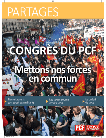 WZd'^ KE'Z^hW& DĞƩŽŶƐŶŽƐĨŽƌĐĞƐ ĞŶĐŽŵŵƵŶ WŝĞƌƌĞ>ĂƵƌĞŶƚര͗ ƐŽŶĂƉƉĞůĂƵdžŵŝůŝƚĂŶƚƐ 001_TAP.indd 1 >ĞƐƚĞdžƚĞƐƐŽƵŵŝƐ ăǀŽƚƌĞǀŽƚĞ >ĞďƵůůĞƟŶ ĚĞǀŽƚĞ 07/04/2016 17:46:21 ĂŵĂƌĐŚĞĐŽŵŵĞŶƚƵŶĐŽŶŐƌğƐര͍ >DK͛DW>K/ >ĞŽŶƐĞŝůŶĂƟŽŶĂůĚĞƐϭϲĞƚϭϳũĂŶǀŝĞƌϮϬϭϲĂĐŽŶǀŽƋƵĠůĞϯϳĞĐŽŶŐƌğƐĚƵWĂƌƟĐŽŵŵƵŶŝƐƚĞĨƌĂŶĕĂŝƐ ůĞƐϮ͕ϯ͕ϰĞƚϱũƵŝŶƉƌŽĐŚĂŝŶƐăƵďĞƌǀŝůůŝĞƌƐ͘ >ĞƐŽďũĞĐƟĨƐĚƵĐŽŶŐƌğƐ >ĞƐĐŽŵŵŝƐƐŝŽŶƐ ͨര>ĞƐĐŽŵŵƵŶŝƐƚĞƐƉƌŽĐğĚĞŶƚĞŶĐŽŶŐƌğƐĂƵdž ĐŚŽŝdžĚΖŽƌŝĞŶƚĂƟŽŶĞƚăůΖĠůĞĐƟŽŶĚĞƐĐŽŵŝƚĠƐ ĞdžĠĐƵƟĨƐ ůŽĐĂƵdž͕ ĚĞƐ ŝŶƐƚĂŶĐĞƐ ĚĠƉĂƌƚĞŵĞŶͲ ƚĂůĞƐĞƚŶĂƟŽŶĂůĞƐĚƵWĂƌƟ͘͘͘രͩ ;ƌƟĐůĞϴĚĞƐƐƚĂƚƵƚƐĚƵW&Ϳ ĮŶĚĞŵĞŶĞƌăďŝĞŶůĞƚƌĂǀĂŝůƐƵƌůĞĐŽŶŐƌğƐ͕ ƚƌŽŝƐĐŽŵŵŝƐƐŝŽŶƐŽŶƚĠƚĠŵŝƐĞƐĞŶƉůĂĐĞ͗ dƌŽŝƐƉŽŝŶƚƐƐŽŶƚƉŽƌƚĠƐăůΖŽƌĚƌĞ ĚƵũŽƵƌĚĞĐĞĐŽŶŐƌğƐ͗ ϭ͘ůĂƌŝĮĞƌĚĂŶƐƵŶƚĞdžƚĞĨŽƌƚĞƚůŝƐŝďůĞůĞƉƌŽũĞƚ ƉŽůŝƟƋƵĞƋƵĞŶŽƵƐƉŽƌƚŽŶƐƉŽƵƌůĂ&ƌĂŶĐĞ͘ /ů ƐΖĂŐŝƚ ĚĞ ĨƌĂŶĐŚŝƌ͕ ƐƵƌ ůĂ ůĂŶĐĠĞ ĚĞ ͨര>Ă &ƌĂŶĐĞ ĞŶ ĐŽŵŵƵŶര͕ͩ ƵŶĞ ĠƚĂƉĞ ƋƵĂůŝƚĂͲ ƟǀĞ ĚĂŶƐ ůΖĠŶŽŶĐĠ ĚĞ ĐĞ ƉƌŽũĞƚ͕ ƋƵŝ ƌĠƉŽŶĚĞ ă ůĂ ƋƵĞƐƟŽŶ ͨരŽŵŵƵŶŝƐƚĞƐ͕ ƉŽƵƌƋƵŽŝ ĐŽŵͲ ďĂƩŽŶƐͲŶŽƵƐര͍ര͕ͩƋƵŝƉĞƌŵĞƩĞăŶŽƚƌĞƉĞƵƉůĞ ĚΖŝĚĞŶƟĮĞƌ ůĂ ƉƌŽƉŽƐŝƟŽŶ ĐŽŵŵƵŶŝƐƚĞ ƐƵƌ ůĞƐĞŶƐĚĞŶŽƚƌĞƐŽĐŝĠƚĠĞƚƐƵƌůĞĐŚĞŵŝŶƋƵĞ ŶŽƵƐƉƌŽƉŽƐŽŶƐ͘ Ϯ͘ ŝƌĞ ĚĂŶƐ ƵŶĞ ƌĠƐŽůƵƟŽŶ ƉŽůŝƟƋƵĞ ĐĞ ƋƵĞ ŶŽƵƐ ǀŽƵůŽŶƐ Ğƚ ƉƌŽƉŽƐŽŶƐ ƉŽƵƌ ůĞƐ ĠůĞĐͲ ƟŽŶƐ ĚĞ ϮϬϭϳ͕ ă ĐŽŵŵĞŶĐĞƌ ƉĂƌ ůΖĠůĞĐƟŽŶ ƉƌĠƐŝĚĞŶƟĞůůĞ ĚΖĂďŽƌĚ͕ ƉƵŝƐ ůĞƐ ůĠŐŝƐůĂƟǀĞƐ Ğƚ ƐĠŶĂƚŽƌŝĂůĞƐ͘ ϯ͘ WƌŽĐĠĚĞƌ ă ƚŽƵƐ ůĞƐ ĐŚĂŶŐĞŵĞŶƚƐ͕ ĂĚĂƉƚĂͲ ƟŽŶƐĞƚƚƌĂŶƐĨŽƌŵĂƟŽŶƐŶĠĐĞƐƐĂŝƌĞƐĚĞŶŽƚƌĞ WĂƌƟ ƉŽƵƌ ƐĞ ŚŝƐƐĞƌ ă ůĂ ŚĂƵƚĞƵƌ ĚĞ ůĂ ƉĠͲ ƌŝŽĚĞ͘ĞƚƌĂǀĂŝůƐƉĠĐŝĮƋƵĞƐĞƌĂƐĂŶĐƟŽŶŶĠĂƵ ŽŶŐƌğƐƉĂƌƵŶƌĞůĞǀĠĚĞĚĠĐŝƐŝŽŶƐĐŽŶĐƌğƚĞƐ͘ DĂƌĐŚĂŶĚEĂƚŚĂůŝĞ͕WĞƌĞĂ>ĂƵƌĞŶƚ͕ZĂǀĂĐŚĞ 'ŝůůĞƐ͕^ŝŵŽŶŶĞƚEĂƚŚĂůŝĞ͘ dƌĂŶƐƉĂƌĞŶĐĞĚĞƐĚĠďĂƚƐ͗ dĞdžƚĞ͗ ŶŶŽŽƚ WŝĞƌƌŝĐ͕ ƐƐĂƐƐŝ ůŝĂŶĞ͕ ĂƵĚƌLJ sŝǀŝĂŶŶĞ͕ ĞƐƐĂĐWĂƚƌŝĐĞ͕ŝnjĞdŚŝďĂƵƚ͕ůĂŶĚŝŽƚͲ&ĂƌŝĚĞŚĂƌͲ ůŽƩĞ͕ŽĐĐĂƌĂ&ƌĠĚĠƌŝĐ͕ƌLJŶŚŽůĞDĂƌĐ͕ƵƌƌŝĐĂŶĚ DĂƌŝĞͲŚƌŝƐƟŶĞ͕ ŚĂƐƐĂŝŐŶĞ ŶĚƌĠ͕ ŝůůŝğƌĞ ,ĠͲ ůğŶĞ͕ ŽŚĞŶ >ĂƵƌĞŶĐĞ͕ ĂƌƟŐŽůůĞƐ KůŝǀŝĞƌ͕ ŚĂƌͲ ƌĠǀŝůůĞWŝĞƌƌĞ͕ƵŵĂƐĠĐŝůĞ͕&ƵĐŚƐ^LJůǀŝĞ͕'ĂůůŽŝƐ DĂƚŚŝĞƵ͕'ƵŝƚĂƌĚůŝŶĞ͕,ĂůĂŽƵŝ&ĂďŝĞŶŶĞ͕,ĂLJŽƚ ůĂŝŶ͕,ĞůůĞĠůƉŚŝŶĞ͕/ĚŝƌEŽƌĚŝŶĞ͕:ƵŵĞů^ĠďĂƐͲ ƟĞŶ͕ <ĞůŶĞƌ ^ĠďĂƐƟĞŶ͕ >ĂŝŶĞ ĂŵŝůůĞ͕ >ĂƵƌĞŶƚ WŝĞƌƌĞ͕>Ğ,LJĂƌŝĐWĂƚƌŝĐŬ͕>ĞDŽŝŶŐ:ĞĂŶͲ>ŽƵŝƐ͕>Ğ ZĞƐƚĞ ŝĚŝĞƌ͕ >ĞĐƌŽƋ ŵŝůŝĞ͕ >ŝĂŶĐĂƌĞůůŝͲ>ŽƉĞnj ƵͲ ƌĠůŝĞ͕ >ŽƌĂŶĚ /ƐĂďĞůůĞ͕ DĂůĂŝƐĠ ĠůŝŶĞ͕ DĂƚŚƵƌŝŶ /ƐĂďĞůůĞ͕ DŽŬƌĂŶŝ DĞŚĚŝ͕ EğŐƌĞ :ĞĂŶͲŚĂƌůĞƐ͕ KďĂĚŝĂ ůĂŝŶ͕ WĂƌŶLJ &ƌĂŶĐŝƐ͕ WŝĐƋƵĞƚ ŚƌŝƐƟĂŶ͕ WŽŵƉŽƵŐŶĂĐ ,ƵŐŽ͕ WƌŝŵĞƚ ZĂƉŚĂģůůĞ͕ ZŽƵďĂƵĚͲ YƵĂƐŚŝĞ 'ƵŝůůĂƵŵĞ͕ ZŽƵƐƐŝůůŽŶ DĂƌŝŶĞ͕ ^ĂďŽƵƌŝŶ ŶŶĞ͕ ^ĂŵĂƌďĂŬŚƐŚ >LJĚŝĂ͕ ^ĂŶĚŽǀĂů sĠƌŽŶŝƋƵĞ͕ ^ĂƚŐĠŽŵŝŶŝƋƵĞ͕^ĂǀŽůĚĞůůŝWĂƐĐĂů͕dŝďĞƌƟĚƌŝĞŶ͕ dƐĂŐŽƵƌŝƐDĠůĂŶŝĞ͕sŝĞƵDĂƌŝĞͲWŝĞƌƌĞ͘ ŶĚƌĠĂŶŝĂƌŽůŝŶĞ͕ƵƌLJdŚŝĞƌƌLJ͕ůĂƵdžsŝǀŝĂŶĞ͕ ŽŵƉĂŝŶyĂǀŝĞƌ͕ŽƐŬƵŶdĂLJůĂŶ͕ĂŶŐdƌĂŶŵͲ ŵĂŶƵĞů͕ĂƌĞĂƵŵŝůŝĞ͕&ŽŶƚĂŶĂ>ŽƌŝƐ͕'ĂLJƌĂƵĚ DĂƌƟŶĞ͕,ƵďĞƌƚĠĐŝůĞ͕>ĂďŽƌĚĞ^ĠďĂƐƟĞŶ͕>ĞͲ >ĂŶŶzĂŶŶ͕>ĞWŽůůŽƚĞĐzĂŶŶ͕DĂƌĠĐŚĂů:ĂĐƋƵĞƐ͕ WĂŐĂŶŽůĂŝŶ͕WƌŝŵŽzǀĞůŝŶĞ͕^ŽƵůĂƌĚWĂƐĐĂůĞ͕sĞƌͲ ŵŽƌĞůEĂƚŚĂůŝĞ͕ĂŵŝĐŚŝĞŝ/ŐŽƌ͘ >͛ŽďũĞƚĚƵǀŽƚĞĚƵϮĂƵϱŵĂŝϮϬϭϲ >ĞŽŶƐĞŝůŶĂƟŽŶĂůĚƵW&ĂĠůĂďŽƌĠĞƚĂĚŽƉƚĠ ůĞƐϱĞƚϲŵĂƌƐĚĞƌŶŝĞƌƐƵŶƉƌŽũĞƚĚĞďĂƐĞĐŽŵͲ ŵƵŶĞĚĞĚŝƐĐƵƐƐŝŽŶƉŽƵƌůĞĐŽŶŐƌğƐ͘ ϯϬϬ ĂĚŚĠƌĞŶƚƐ ĠŵĂŶĂŶƚ Ě͛ĂƵ ŵŽŝŶƐ Ϯϰ ĨĠĚĠͲ ƌĂƟŽŶƐ ĂǀĂŝĞŶƚ ůĂ ƉŽƐƐŝďŝůŝƚĠ ĚĞ ƉƌĠƐĞŶƚĞƌ ƵŶ ƚĞdžƚĞĂůƚĞƌŶĂƟĨ͘ ĠůĠŐĂƟŽŶĚƵŽŶƐĞŝůŶĂƟŽŶĂů ăůĂĐŽŵŵŝƐƐŝŽŶĚĞƐĐĂŶĚŝĚĂƚƵƌĞƐ͗ >͛ĞŶƐĞŵďůĞĚĞĐĞƐƚĞdžƚĞƐĞƐƚƉŽƌƚĠăůĂĐŽŶŶĂŝƐͲ ƐĂŶĐĞĚĞƐĐŽŵŵƵŶŝƐƚĞƐĂǀĞĐĐĞĚŽĐƵŵĞŶƚ͘Ƶ Ϯ ĂƵ ϱ ŵĂŝ͕ ůĞƐ ĂĚŚĠƌĞŶƚƐ ĐŚŽŝƐŝƐƐĞŶƚ͕ ƉĂƌ ƵŶ ǀŽƚĞ͕ůĞƚĞdžƚĞƋƵŝĚĞǀŝĞŶĚƌĂůĂďĂƐĞĐŽŵŵƵŶĞ ĚĞ ĚŝƐĐƵƐƐŝŽŶ ĚĞƐ ĐŽŶŐƌğƐ ůŽĐĂƵdž͕ ĚĠƉĂƌƚĞͲ ŵĞŶƚĂƵdžĞƚŶĂƟŽŶĂů͘ ŝĚĂƌĚ,ĠůğŶĞ͕ƌĠĨŽƌƚ&ƌĂŶĕŽŝƐĞ͕ƌƵůŝŶĠͲ ůŝŶĞ͕ŚĂďĂůŝĞƌ:ĂĐƋƵĞƐ͕ĞůŵĞŝĚĂ/ƐĂďĞůůĞ͕ ĞďƸZĂƉŚĂģů͕&ĂƵĐŝůůŽŶůƐĂ͕&ƌ