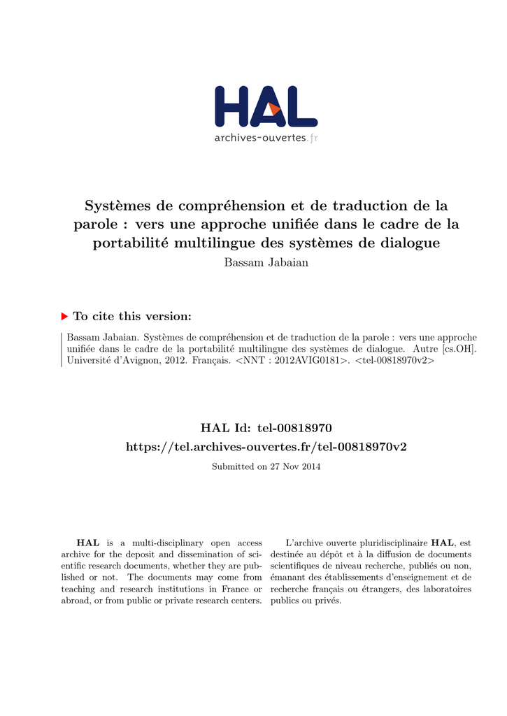 Systèmes de compréhension et de traduction de la