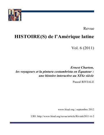 Revue HISTOIRE(S) de l’Amérique latine Vol. 6 (2011) Ernest Charton, les voyageurs et la pintura costumbrista en Équateur : une histoire interactive au XIXe siècle Pascal RIVIALE www.hisal.org | septembre 2012 URI: http://www.hisal.org/revue/article/Riviale2011-6-2 HISTOIRE(S) de l'Amérique latine, 2011, vol. 6, article nº2, 40 p. Ernest Charton, les voyageurs et la pintura costumbrista en Équateur : une histoire interactive au XIXe siècle Pascal RIVIALE* La pintura costumbrista équatorienne est encore peu connue chez nous. Jusqu’ici on en connaissait peu d’exemples en France, si ce n’est à travers les gravures publiées au XIXe siècle dans des revues telles que L’Illustration, Le Magasin Pittoresque ou Le Tour du Monde, gravures faites d’après des dessins exécutés par l’artiste voyageur Ernest Charton au cours de ses séjours sur place entre 1846 et 1862. Dans le courant de l’année 2010, le musée du quai Branly a fait l’acquisition d’un album de dessins aquarellés réalisés en Équateur vers le milieu du XIXe siècle, représentant différents petits métiers, des personnages en costumes de processions, des indigènes de la partie orientale du pays, des scènes de genre : autant de sujets appartenant au registre du costumbrisme équatorien. La très grande proximité des thèmes traités avec d’autres œuvres actuellement conservées dans des collections équatoriennes ainsi qu’avec des articles publiés dans la revue L’Illustration nous a d’abord fait penser qu’il pouvait s’agir de ce même Ernest Charton. Cependant, après l’avoir analysé attentivement et après comparé cet album avec diverses autres sources, nous ne sommes plus vraiment convaincu que ces dessins soient de la main de Charton. Cela n’enlève rien à l’intérêt de cet album que nous regardons maintenant avec un autre œil et qui, en définitive, vient soulever d’autres questions : il nous invite à réfléchir plus globalement sur le mode de production de ces images, sur leur circulation et sur les interactions entre artistes et collectionneurs – tant français qu’équatoriens. A nos yeux, cet album n’est pas seulement un exemple parmi d’autres de la pintura costumbrista équatorienne ; il est * Archives nationales, site de Pierrrefitte-sur-Seine et et centre EREA du LESC (CNRS-UPO). Ce texte est une version étendue de la communication donné lors du colloque intitulé « France Équateur : Regards croisés », organisé par le Centre d´études équatoriennes de Paris-Ouest-Nanterre, 2 et 3 décembre 2001. Des difficultés relatives aux droits de reproduction de certaines images accompagnant l'article nous ont empêché de le publier conjointement aux actes de ce colloque à paraître dans la revue CRISOL (publication du Centre de Recherches Ibériques et Ibéroaméricaines de l'Université Nanterre-Paris ouest-La Défense). Nous en profitons d'ailleurs pour remercier le Muséum national d'Histoire naturelle et le musée du quai Branly de nous avoir aimablement communiqué des images de bonnes qualités pour les besoins de la présente publication. Riviale : Ernest Charton, les voyageurs et la pintura costumbrista en Équateur 2 sans doute également révélateur d’autres aspects plus complexes de cette activité artistique et de sa réception à l’étranger. Dans un premier temps, nous présenterons le parcours d’Ernest Charton, artiste dont on sait finalement peu de choses et sur lequel circulent beaucoup d’informations vagues ou erronées, puis nous décrirons rapidement l’album d’aquarelles acquis par le musée du quai Branly ; enfin, nous évoquerons la question de la circulation des images appartenant à ce registre iconographique et envisagerons ce que l’on peut en déduire en termes d’interaction entre artistes, collectionneurs et média au XIXe siècle entre la France et l’Équateur. Ernest Charton, un artiste tourmenté et méconnu Ernest Charton est né à Sens le 22 mars 1816 ; son père fait vivre la famille avec les revenus d’une petite propriété1. A l’opposé de son frère aîné Edouard, qui mènera une vie médiatique et politique intense et brillante, Ernest restera dans l’ombre, se considérant peut-être lui-même comme « le vilain petit canard » de la famille2. On ne sait rien de ses premières études menées au collège de Sens, ni des circonstances qui l’amènent au Havre vers 1838 où il ouvre un magasin de nouveautés (mercerie, bijouterie, étoffes, etc.). En avril 1839, il se marie à Sens avec Elisa Lagrémoire, fille d’un huissier de la ville, puis en novembre de cette même année, le couple s’installe au Havre. Les affaires de son magasin marchent d’autant plus mal que sa gestion en est fantasque et qu’Ernest ne semble pas s’y intéresser vraiment. Il rêve sans doute d’être artiste. On le retrouve à Paris en 1844, inscrit à l’École des Beaux-arts, où sa candidature a été présentée par le peintre Gleyre 3. Mais là non plus, le goût n’y est pas et il suit sans doute peu les cours de l’École : son nom n’apparaît qu’une seule fois dans le registre des procès-verbaux des concours4. 1 Sur l’entourage familial d’Ernest Charton, voir Annie LAGARDE FOUQUET et Christian LAGARDE, Edouard Charton et le combat contre l’ignorance, Rennes, Presses universitaires de Rennes, 2006 ; Bibliothèque municipale de Sens, Edouard Charton et les siens, catalogue de l’exposition du 9 octobre au 17 novembre 2007. Je remercie Annie Lagarde pour les informations et documents qu’elle m’a aimablement fournis. 2 La correspondance d’Edouard Charton laisse entendre que son frère était un grand tourmenté, causant toute sa vie les plus grandes inquiétudes à sa famille. Marie-Laure AURENCHE, Edouard Charton. Correspondance générale, 1824-1890, Paris, Honoré Champion, 2008, vol.I, p. 127, note 1. 3 Le formulaire-type de candidature est ainsi rédigé : « J’ai l’hon