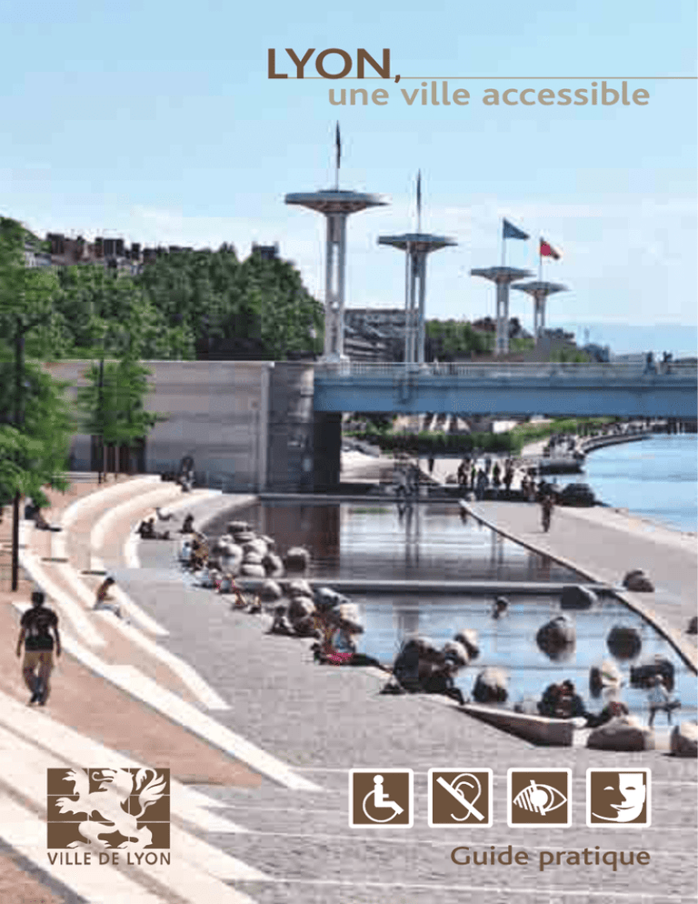 LYON, une ville accessible Guide pratique Sommaire • Liste des pictogrammes ............................................................................................................................................................................................ 5 1 - La vie citoyenne • La vie associative .................................................................................................................................................................................................................. 6 • Associations .................................................................................................................................................................................................................................... 7 • Locaux associatifs .......................................................................................................................................................................................................... 20 • L’accès à l’information ............................................................................................................................................................................................ 25 • Des bureaux de vote accessibles .......................................................................................................................................................... 27 2 - Les services publics • Les mairies.................................................................................................................................................................................................................................... 28 • Les antennes solidarités ...................................................................................................................................................................................... 32 • Les centres sociaux ...................................................................................................................................................................................................... 35 • La Maison départementale des Personnes Handicapées ........................................................................................................ 38 • Autres services publics .................................................................................................................................................................................................................................... 42 3 - Les déplacements dans la ville • Les transports en commun ............................................................................................................................................................................ 46 • Le service Optibus .......................................................................................................................................................................................................... 51 • Le stationnement : parcs de stationnement et places GIG-GIC .................................................. 52 • Les aménagements de voirie et les feux sonores .................................................................................................. 59 • Les gares SNCF .................................................................................................................................................................................................................... 60 • Les sanitaires accessibles .................................................................................................................................................................................. 62 4 - L’enfance et la petite enfance • Petite enfance : structures de garde et d’accueil .................................................................................................. 66 • Les écoles du premier degré ...................................................................................................................................................................... 79 • Les maisons de l’enfance.................................................................................................................................................................................... 98 5 - La santé • Les Hospices Civils de Lyon ...................................................................................................................................................................... 100 • Les Maisons Médicales de Garde .................................................................................................................................................... 102 6 - Le logement • Les démarches auprès du parc public...................................................................................................................................... 104 • L’adaptation des logements ...................................................................................................................................................................... 107 • Contacts ...................................................................................................................................................................................................................................... 108 7 - La culture • Les musées .............................................................................................................................................................................................................................. 110 • Les théâtres............................................................................................................................................................................................................................ 115 • Les salles de concerts et de spectacles ....................................