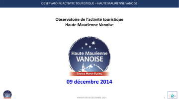 OBSERVATOIRE ACTIVITE TOURISTIQUE – HAUTE MAURIENNE VANOISE Observatoire de l’activité touristique Haute Maurienne Vanoise 09 décembre 2014 ANIMATION 09 DECEMBRE 2014 1 OBSERVATOIRE ACTIVITE TOURISTIQUE – HAUTE MAURIENNE VANOISE Sommaire 1. 2. 3. 4. 5. 6. 7. 8. 9. Méthodologie – les questions que vous vous posez Les données clés de la destination Quelques éléments de comparaison L’état des réservations au 01/12/2014 Le pricing Le calendrier 2014-2015 /2015-2016 Synthèse Plan d’actions Quelques données comportementales explicatives du modèle touristique. ANIMATION 09 DECEMBRE 2014 2 OBSERVATOIRE ACTIVITE TOURISTIQUE – HAUTE MAURIENNE VANOISE METHODOLOGIE ANIMATION 09 DECEMBRE 2014 3 OBSERVATOIRE ACTIVITE TOURISTIQUE – HAUTE MAURIENNE VANOISE Comment sont collectées les données? Pour les professionnels: -Par collecte automatisée avec toutes les agences immobilières et la place de marché. -Par formulaire ou échange de fichiers avec les autres opérateurs. -Les professionnels « non répondants » à l’enquête sont « estimés » selon le remplissage moyen de leur catégorie d’hébergement. Pour les loueurs de particulier à particulier: -Après identification des stocks sur les principaux sites de locations de vacances, le taux de remplissage de ces offres est issu d’un scan automatique d’un échantillon de 30% des offres présentes dont les plannings sont les plus à jour. La classification des lits LITS PROFESSIONNELS LITS CHAUDS Hôtel Résidence de tourisme Village vacances Gestion Tour Opérateur Centrale de reservation Agence immobilière Résidence en multipropriété Camping LITS NON PROFESSIONNELS LITS FROIDS Résidence secondaire LITS TIEDES Gites de France Clé Vacances Offres C2C (de particulier à particulier) Listes des loueurs ANIMATION 09 DECEMBRE 2014 4 OBSERVATOIRE ACTIVITE TOURISTIQUE – HAUTE MAURIENNE VANOISE METHODOLOGIE – les questions que vous vous posez Quelle est la différence entre un taux d’occupation et un taux de remplissage? TAUX DE REMPLISSAGE DES NUITEES VS TAUX D'OCCUPATION 100% 90% TAUX D’OCCUPATION 80% 70% TAUX DE REMPLISSAGE 60% 50% 40% 30% 20% -Le taux d’occupation indique le niveau moyen de fréquentation d’un hébergement (appartement ou chambre) sur une période donnée - le taux de remplissage prend en compte le nombre de personnes dans cet appartement ou chambre soit l’occupation réelle du bien. Le taux de remplissage est systématiquement inférieur de 5 à 20 points aux taux d’occupation car un appartement ou une chambre est rarement occupé par le nombre de personnes maximum. 10% 0% S48 S49 S50 S51 S52 S1 S2 S3 S4 S5 S6 TAUX DE REMPLISSAGE S7 S8 S9 S10 S11 S12 S13 S14 S15 S16 S17 S18 S19 TAUX D'OCCUPATION Exemple: Une chambre de 4 personnes peut être remplie sur les 4 semaines des vacances d’hiver et occupée seulement par 2 personnes sur chacune de ces semaines. Le taux d’occupation sera alors de 100% quand le taux de remplissage sera à 50% sur cette période. ANIMATION 09 DECEMBRE 2014 5 OBSERVATOIRE ACTIVITE TOURISTIQUE – HAUTE MAURIENNE VANOISE LES DONNES CLES DE LA DESTINATION ANIMATION 09 DECEMBRE 2014 6 OBSERVATOIRE ACTIVITE TOURISTIQUE – HAUTE MAURIENNE VANOISE Les données clés du territoire Haute Maurienne Vanoise = une capacité d'accueil de 28 923 lits Haute Maurienne Vanoise, une capacité d’accueil de 28 923 lits dont près de 18 000 lits sur le domaine de Val Cenis Vanoise. Un des plus gros « stocks » de lits touristiques de la Maurienne après les Sybelles (43 000 lits) et Galibier Thabor (27 000 lits) 5 835 592 12 452 3 240 1 808 4 996 Répartition des lits professionels SollièresSardieresBramans; 8% Bonneval Bessans; 13% Val Cenis Vanoise; 79% RESIDENCES DE TOURISME HÔTELS CLUBS, V. VACANCES AGENCES IMMOBILIERES C2C NON MARCHANDS 79% de la capacité professionnelle se situe sur Val Cenis Vanoise. ANIMATION 09 DECEMBRE 2014 7 OBSERVATOIRE ACTIVITE TOURISTIQUE – HAUTE MAURIENNE VANOISE • Près de 1,7 millions de nuitées réalisées sur le territoire hiver + été. • La part de l’été = 29% • 63% des nuitées l’hiver sont converties en journées de ski. Fréquentation globale du territoire Haute Maurienne Vanoise 140 000 120 000 100 000 80 000 60 000 40 000 20 000 0 ANIMATION 09 DECEMBRE 2014 8 OBSERVATOIRE ACTIVITE TOURISTIQUE – HAUTE MAURIENNE VANOISE Fréquentation des lits professionnels (nuitées) 60 000 La contribution de Val Cenis Vanoise en termes de production de nuitées professionnelles sur le territoire = 80% (12% pour Bonneval et Bessans, 8% pour Sollières-Sardières et Bramans) 50 000 40 000 30 000 20 000 10 000 0 Bonneval - Bessans Val Cenis Vanoise Sollières-Sardieres-Bramans ANIMATION 09 DECEMBRE 2014 9 OBSERVATOIRE ACTIVITE TOURISTIQUE – HAUTE MAURIENNE VANOISE le rendement des lits marchands - distinction hiver et été 80 70 60 71 59 54 50 38 40 30 23 37 28 25 19 20 12 11 10 0 RESIDENCES DE TOURISME HÔTELS CLUBS, V. VACANCES HMV HIVER AGENCES IMMOBILIERES CAMPING CARAVANEIGE LITS TIEDES PARTICULIERS & FROIDS HMV ÉTÉ Des rendements (nombre de nuitées générées par lit) de 71 pour les villages vacances l’hiver et 37 l’été. Ce secteur possède le meilleur rendement du territoire. Les hôteliers ont un rendement modeste (38 nuitées par lit sur la saison d’hiver) ANIMATION 09 DECEMBRE 2014 10 OBSERVATOIRE ACTIVITE TOURISTIQUE – HAUTE MAURIENNE VANOISE Les données clés de la fréquentation - En hiver 2014, un recul de la fréquentation de : -0,7% - Une progression l’été de +4,1% versus l’été 2013 Le modèle de la Haute Maurienne Vanoise est impactée: - l’hiver par: - Les lits non marchands qui occupent une place significative (43% des lits, sur représentation de ces lits versus la Maurienne – 41% ou les stations de Tarentaise (25-30%) - La faible performance des lits hôteliers de manière générale - Une offre faible (en volume) des agences immobilières (6% de l’offre globale) à l’