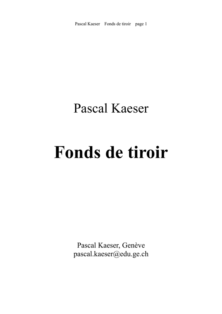 Pascal Kaeser Fonds de tiroir page 1 Pascal Kaeser Fonds de tiroir Pascal Kaeser, Genève [email protected] Pascal Kaeser TABLE DES MATIÈRES Clichés de notre temps Que faut-il en penser ? Le mur des réformateurs Les voix du voyage Sermon du diable L’heure de se lever devoir de respect Ecce homo Quel enseignement tirer de la folie ? Sujet Qui périra le dernier Voeux Depuis que je suis mort Les pierres du lac de Genève Théâtre de rue Énigme historique Impro Je te m’aime En effeuillant la Marguerite Éloge de l’aisance Génèse Tour de cartes S’aligner sur la majorité L’anthropopresse Quatorzine en sonnets Un voyage à 2000 pieds Fonds de tiroir page 2 Pascal Kaeser Fonds de tiroir page 3 Clichés de notre temps Je pourrais te parler de l’art contemporain qui tantôt va puiser dans la fosse à purin – car la croûte embellit sous trois couches de crotte – et qui tantôt martèle une masse d’airain pour lui donner l’aspect d'une immense compote... Mais dans un millénaire, on s’en foutra, mon pote ! Je pourrais te parler de ces fous du Coran – si dépourvus d’esprit, mais non de carburant – qui font partout la guerre à la femme, au rebelle et même au plaisantin dont le verbe hilarant sort trop libre et moqueur d’une bouche infidèle... Mais dans un millénaire, on s’en foutra, ma belle ! Je pourrais te parler de tous ces appareils dont le charme puissant menace le sommeil : l’i-pod, le DVD, le mobile suave, la console de jeux, l’ordinateur-conseil... La technique assouvit le désir d’être esclave. Mais dans un millénaire, on s’en foutra, mon brave ! Je pourrais te parler de notre roi : l’argent. Il a trop de crédit auprès des pauvres gens pour être un bon monarque. Il perd souvent la boule et ses crises font mal au peuple intelligent qui devrait l’empêcher de griller ses ampoules. Mais dans un millénaire, on s’en foutra, ma poule ! Je pourrais te parler des intellectuels qui détournent les mots – ça fait plus actuel – et retournent leur veste à l’ombre d’Alexandre. Au mépris du bon goût, leur jeu perpétuel consiste à fourvoyer ceux qui voudraient comprendre. Mais dans un millénaire, on s’en foutra, mon gendre ! Je pourrais te parler de notre star-system. Au centre du salon se dresse un grand totem : l’écran plat lumineux dont l’impudeur aguiche la féconde tribu parquée en H.L.M. Acteurs, chanteurs, buteurs : vivent les nouveaux riches ! Mais dans un millénaire, on s’en foutra, ma biche ! Pascal Kaeser Fonds de tiroir Je pourrais te parler du mensonge éhonté qu’on enseigne à l’école aux futurs dépités : « Les hommes sont égaux, croyez-en le grand-prêtre ! Vous avez, mes enfants, toutes les qualités pour ne pas réussir... à moins de vous soumettre ! » Mais dans un millénaire, on s’en foutra, cher Maître ! Je pourrais te parler des accros du boulot, qui pensent que le stress nourrit le ciboulot. Le devoir avant tout, ce n’est pas si facile ! Il faut de la vertu jusqu’au bout du rouleau pour s’astreindre à produire un gadget imbécile. Mais dans un millénaire, on s’en foutra, Cécile ! Ah ! si j’étais poète et non pas rimailleur, je saurais vous parler de l’éternel Ailleurs, où la vie est plus simple et ne sent pas le chlore, où le temps nous invite à donner le meilleur... Et même dans mille ans, si l’homme existe encore, on ne s’en foutrait pas, foi de vrai dinosaure ! ☼ Texte paru dans : – la revue Le Coin de table n° 43, 2010 page 4 Pascal Kaeser Fonds de tiroir page 5 Que faut-il en penser ? A – Pouvons-nous parler ? B – Pourquoi pas ? A – Mais à quoi bon ? B – De quoi pourrions-nous bien parler ? A – De quoi pourrions-nous parler bien ? B – De la vie ? A – Mais la vie est-elle si simple que chaque problème doive recevoir une solution ? B – Et l’intelligence humaine est-elle si développée que chaque question doive trouver une réponse ? A – Se pourrait-il que tout être qui affirme soit en définitive un imposteur ? B – Que valent nos certitudes, nos convictions, même celles qui nous semblent les plus solides ? A – Comprenons-nous vraiment le réel dans toute sa complexité ? B – N’est-ce pas s’aveugler que de s’imaginer savoir ? A – Sommes-nous bien conscients des simplifications abusives que nous opérons chaque fois que nous croyons énoncer quelque vérité ? B – Serions-nous capables de penser si nous étions dépourvus de ce pouvoir de simplifier ? A – Qui peut le dire ? B – Dois-je conclure ? Pascal Kaeser Fonds de tiroir Le mur des réformateurs Des touristes nippons, tranquilles spectateurs, déshabillent des yeux le mur des sectateurs. Bouchard et Landowski ont taillé les statues. N’en déplaise au latin, la lumière aussi tue. Jean Calvin fut conquis par Guillaume Farel, un grammairien français à l’orgueil naturel. Farel sut le convaincre, en invoquant l’attente, d’offrir à la Cité la vertu protestante. Et Calvin, chahuté par des joyeux lurons, interdit le plaisir, la danse, les jurons, le chant, le carnaval, le jeu, la pétulance et même les bijoux, les signes d’élégance. Théodore de Bèze à Calvin succéda. Il suça la Réforme et la consolida. Dommage qu’un poète, un brillant latiniste, abandonnât la rime et devînt calviniste ! John Knox figure aussi sur le gros monument. Ce précepteur d’Écosse était-il moins dément ? À Genève, il apprit l’art d’emmerder le monde. De retour à Glasgow, il parfit sa faconde. Quatre cœurs de granit, quatre barbus bornés sont figés dans un mur, après avoir miné tout ce qui donne à l’homme un bonheur éphémère, le seul bonheur qui puisse étrangler les chimères. page 6 Pascal Kaeser Fonds de tiroir page 7 Les voix du voyage J’entends des voix. Des voix qui me disent : « Tu es dingue, puisque tu nous entends ! » Pas du tout ! Je traduis quelques silences. Ouvrir le rideau. Le radeau m’attend. Voyager... le rem