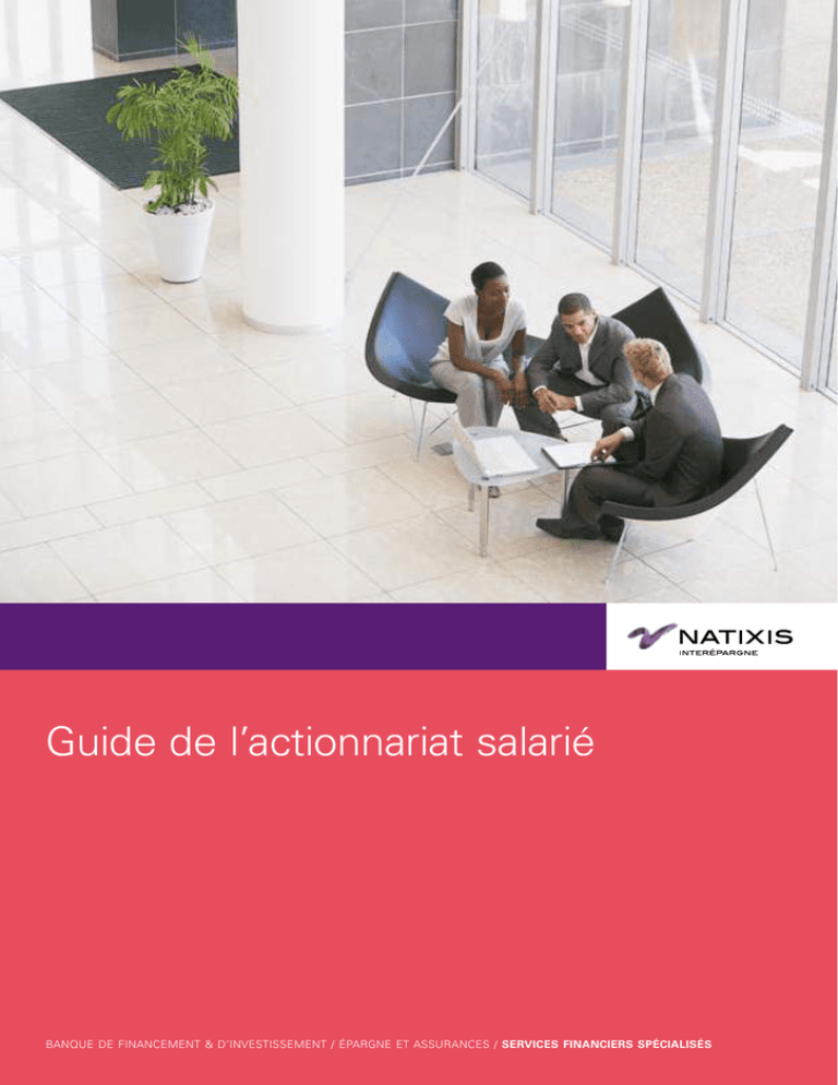 Guide de l’actionnariat salarié BANQUE DE FINANCEMENT & D’INVESTISSEMENT / ÉPARGNE ET ASSURANCES / SERVICES FINANCIERS SPÉCIALISÉS Guide de l’actionnariat salarié Sommaire Edito page 3 I) Les opérations d’actionnariat salarié dans le cadre du PEE : Les principes de base de l’actionnariat salarié Les principes spécifiques aux FCPE investis en titres de l’entreprise Les principes spécifiques aux comptes titres page 3 page 8 page 14 II) Les principales opérations d’actionnariat salarié : 2 Les attributions d’actions gratuites page 19 L’augmentation de capital réservée aux salariés page 23 Les stocks options page 27 La cession d’actions sur titres non cotés page 36 Édito L’actionnariat salarié s’est largement développé en France ces dernières années. Cet essor a démarré durant les années 80 grâce aux programmes de privatisations engagés par l’Etat. Si la plupart des opérations concernent des entreprises cotées(1), l’actionnariat salarié se développe aussi sur les entreprises non cotées. La France est le pays d’Europe le plus avancé sur le plan de l’actionnariat salarié. D’après une étude récente réalisée par DEBORY ERES(2) 8 2% des entreprises françaises cotées ont des plans d’actionnariat pour l’ensemble de leurs salariés - contre une moyenne européenne de 48% 47,2% des salariés sont actionnaires contre 28% en Europe Au 31 décembre 2014, 42,9 milliards d’euros étaient investis en fonds d’actionnariat salarié, soit 39% des encours gérés (AFG) Le taux de détention par les salariés des entreprises du CAC40 atteint un niveau record de 4,4% depuis 2006 Alors pourquoi un tel succès ? Les dispositifs d’actionnariat salarié font parties intégrantes de l’épargne salariale. Les différentes lois qui se sont succédées depuis celles du 19 février 2001 sur l’épargne salariale ont eu pour objectif de développer l’actionnariat des salariés. Ces opérations qui permettent aux entreprises d’associer leurs salariés au capital présentent des avantages tant pour les salariés que pour leurs employeurs : Elles permettent aux salariés d’acquérir les titres de leur entreprise à des prix préférentiels tout en bénéficiant d’un cadre social et fiscal attractif. Pour les employeurs la mise en place d’un plan d’actionnariat salarié offre plusieurs atouts : Stabiliser l’actionnariat de l’entreprise Fédérer les collaborateurs autour d’objectifs stratégiques communs Développer le sentiment d’appartenance, notamment dans le cas de l’intégration de nouvelles entités Fidéliser les collaborateurs et attirer de nouveaux talents Disposer d’une source de financement supplémentaire Il existe plusieurs possibilités offertes aux salariés pour devenir actionnaires de leur entreprise, bien que le mode d’actionnariat salarié le plus développé aujourd’hui passe par l’utilisation du Plan d’Epargne Entreprise : Souscrire aux augmentations de capital réservées aux salariés Recevoir des options de souscription ou d’achat d’actions Investir la participation, l’intéressement et l’abondement dans l’achat des titres de l’entreprise : les salariés peuvent investir leurs droits acquis dans le cadre de la participation obligatoire et de l’intéressement en actions de leur entreprise via le PEE. Bénéficier de la distribution gratuite d’actions Ce guide a pour vocation de présenter toutes ces opérations. À noter Le projet de loi pour la croissance, l’activité et l’égalité des chances économiques (dite « Loi Macron ») actuellement en cours d’examen prévoit une évolution de la fiscalité sur les actions gratuites ainsi qu’un allègement des bons de souscription de part de créateurs (1) 85 % des opérations selon le benchmark FAS-Altédia 2014. - (2) Source : FEAS, DEBORY ERES – Etude Actionnariat salarié France 2014. 3 Les opérations d’actionnariat salarié dans le cadre du PEE 1. Les principes de base de l’actionnariat salarié Les entreprises concernées Les bénéficiaires Les modalités d’actionnariat salarié Les titres 2. L es principes spécifiques aux FCPE investis en titres de l’entreprise 4 p.5 p.5 p.6 p.6 p.6 p.8 Le dossier d’agrement AMF (et diligence clientèle) Le conseil de surveillance des FCPE Le versement des dividendes liés aux actions L’évaluation des titres non cotés (actions, obligations, titres de créance négociables) Les documents d’information semestriels p.9 p.11 p.13 3.Les principes spécifiques aux comptes titres p.14 La diligence clientèle Les régles de liquidité pour les sociétés non cotées L’ouverture des comptes titres Les arbitrages avec le compte titres Le versement des dividendes liés aux actions Les relevés de portefeuille et relevés fiscaux Le départ du salarié de l’entreprise p.15 p.15 p.15 p.15 p.16 p.16 p.17 p.13 p.13 1. L ES PRINCIPES DE BASE DE L’ACTIONNARIAT SALARIÉ Seuls le Plan d’Épargne d’Entreprise (PEE) et le Plan d’Épargne Groupe (PEG) peuvent mettre en œuvre un plan d’actionnariat salarié. Les autres formes de plans d’épargne salariale ne permettent pas de procéder à des opérations d’actionnariat salarié. Les principes décrits dans ce guide s’appliquent par conséquent aussi bien au PEE qu’au PEG. LES ENTREPRISES CONCERNÉES L’actionnariat salarié est réservé aux sociétés par actions (SA, SAS, commandite par actions,…), que ces dernières soient admises aux négociations sur un marché réglementé ou non. Les SARL en sont par conséquent exclues. La notion de groupe d’entreprises Les salariés peuvent acquérir les titres de leur entreprise ou d’une entreprise qui lui est liée. Par entreprise liée, on entend celle comprise dans le périmètre de consolidation ou de combinaison des comptes(1). Représentation obligatoire des salariés actionnaires dans les conseils d’administration et de surveillance La société 