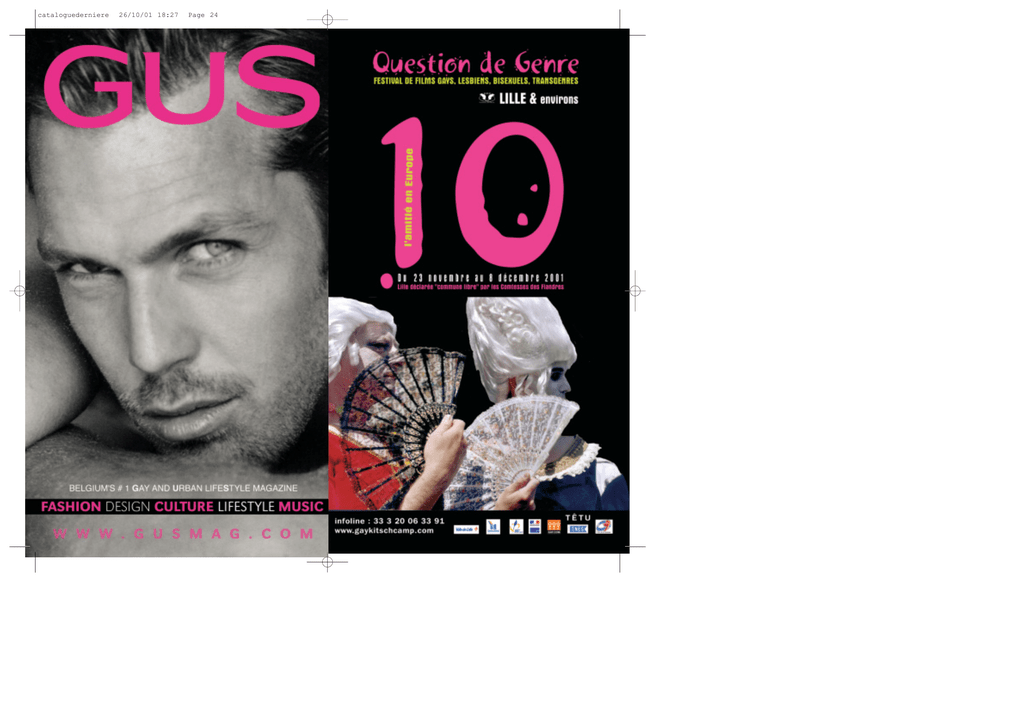 cataloguederniere 26/10/01 18:27 Page 24 cataloguederniere 26/10/01 18:23 Page 2 ÉDITOS LE MOT DU MAIRE Je suis heureuse de saluer l'équipe du Festival Question de Genre, réunie autour de Patrick Cardon, et de m'associer à cette dixième édition, en lui souhaitant plein succès. Questions de genre, qui avait exploré la "question homosexuelle" en Europe, s'intéresse désormais à l'amitié en Europe. Ce choix des termes n'est pas neutre, il contient une volonté d'intégration et d'échange, enfin rendue possible parce que les esprits ont heureusement évolué, même s'il reste encore des incompréhensions et des blocages. La culture est justement le lien indispensable, celui qui ouvre un autre dialogue, atténue ces blocages et ces incompréhensions en transformant progressivement les regards. Dans ce contexte, GayKitschCamp a un rôle important. Elle est à la fois actrice et de ces évolutions, avec Question de Genre, et observatrice et analyste, à travers son centre européen de recherches, d'études et de documentation sur les homosexualités, dont la Ville de Lille appuiera le développement. Plus généralement, l'action de la communauté gay, lesbienne et transgenre témoigne d'ailleurs de ces évolutions, puisqu'après avoir lutté pendant des années contre le refus et l'exclusion, elle affirme aujourd'hui clairement son identité et sa place dans la société, dont le PACS est évidemment un symbole très fort. Il signifie, par son insertion dans la loi, que la communauté homosexuelle appartient définitivement et visiblement à la société. Pour ma part, je suis heureuse que Lille comporte en son sein une communauté homosexuelle vivante et créative, et je lui renouvelle mon soutien chaleureux. Martine Aubry Maire de Lille GLBT* : Gays, lesbiennes, bisexuel(l)es, transgenres UN MOT SUR LES COMTESSES : Un mot sur les comtesses qui marqueront les pages de ce programme riche en amitiés de toutes sortes : vous les avez acclamées en juin dernier dans leur carosse qui menait le défilé de la Lesbian&Gaypride. Elles voudraient vous sensibiliser à l'histoire locale pour une nouvelle configuration de l’Europe à venir. Il s’agit de donner un mythe à nos communautés. C’est pourquoi Lille est déclarée «Ville libre» sous leur égide. Elles seront les garantes des droits acquis ouà acquérir des GLBT*. Nous avons eu des baptêmes républicains (pour la régularisation des sans-papiers). Nous aurons des baptêmes comtaux (pour combler chaque déficit de citoyenneté). Lille, « Commune libre » c’est vivre, pendant ces jours de festival, comme si l’égalité était acquise. Cela nous donnera plus de force pour l’obtenir. C’est une fiction telle que chaque film devrait l’être. Patrick Cardon [Cf. Geneviève de Cant, Jeanne et Marguerite de Constantinople, Comtesses des Flandres et du Hainaut au XIIIe s., préf. Régine Pernoud, éditions Racine, 1997] Des sites intéressants que vous pourrez consulter sans rougir au cybercafé Le Smiley, rue Royale à Lille. : tapiole.com ; tarlhouse.com ; media-g.net ; adventice.com ; citegay.com ; www.kelma.org ; www.feesdulogis.net ; http://perso.wanadoo.fr/3g/ cataloguederniere 26/10/01 18:24 Page 4 5 dès le 21 novembre MAJESTIC lille UN AVANT GOÛT DU FESTIVAL Mulholland drive, [horaires au 08 36 68 00 43] David Lynch, USA, 2001, 146’, Dist Bac Films. Avec Naomi Watts, Laura Elena Harring, Justin Theroux, Ann Miller Une femme dans une limousine. Elle est brune et belle. Son chauffeur la menace d’un revolver. Mais deux voitures s’amusent à faire une course stupide et rapide sur Mulholland Drive. L’une d’elle percute la limousine. La femme arrive sur Sunset Boulevard, amochée légèrement.Amnésique. Elle occupe l’appartement d’une femme partie en voyage devant ses yeux. Elle ne la connaît pas.Arrive alors une charmante blondinette, toute fraîche, et qui n’est autre que la nièce de la propriétaire.Ce n’est pas simplement la mémoire qu’il faut retrouver, c’est aussi la vérité. Entre les deux femmes, il y a une histoire d’amour, qui a commencé avant ou après l’accident, on ne sait pas encore. www.mulhollanddrive.com ADRESSES ARCHERS Cinéma, 2 r. des Archers, Cambrai, 03 27 83 89 00 AIDES, Association de Lutte contre le sida, 109 rue du Molinel, Lille, 03 28 520 510, www.aides.org APGL, Association de Parents Gays et Lesbiens, BP 51, 59008 Lille Cedex, 03 20 53 16 77, http://www.france.qrd.org/assocs/apgl/ ESPACE MATISSE, Centre Commercial Euralille, accès extérieur rez-de-chaussée ou int.1er étage FEU FOLLET, restaurant, 10 rue Léon Trulin, Lille, 03 20 15 88 75 FLAG CAFÉ, 1 rue Basse, Lille, 03 20 39 17 22 FNAC, café-fnac, 20 rue Saint Nicolas, Lille, 03 20 15 58 15 FRESNOY Studio National, 22 r. du Fresnoy,Tourcoing, 03 20 28 38 00, M°Mercure FURETForum, 15 Place du Général de Gaulle, Lille, 03 20 78 43 43 GayKitschCamp, 38 bis rue Royale, Lille, 03 20 06 33 91 www.GayKitschCamp.com HIPPODROME Place du Barlet, Douai, 03 27 99 66 69 KINO Cinéma, Université Charles de Gaulle (Lille3),Villeneuve d’Ascq, 03 20 41 61 43, M° Pont de Bois LES FLAMANDS ROSES/SERAIL WARDI, au local interassociatif LE J'EN SUIS J'Y RESTE, 19 rue de Condé, Lille, 03 20 52 28 68, M° Porte de Douai, www.lesflamandsroses.com LE SMILEY, Cybercafé, 2 rue Royale, Lille, 03 20 21 12 19 LOKAL Sauna, 95 bis rue du Molinel, Lille, 03 20 30 67 85 MAJESTIC Cinéma, 54/56 r. de Béthune, Lille, 08 36 68 00 43 MÉLIÈS Cinéma, Centre commercial Triolo,Villeneuve d’Ascq, 03 20 61 96 92, M° Triolo METROPOLE Cinéma, 26 r. des Ponts de Comines, Lille, 08 36 68 00 73 MJC Terre Neuve Festival du film de Dunkerque, 43 r. du Dr Louis Lemaire, Dunkerque, 03 28 66 47 89, e-mail: [email protected] MUM’S bar, 4 r. Doudin, Lille, 03 20 06 32 22 P’TIT MARAIS Bar, 45 r. Lepelletier, Lille, 03 20 51 30 09 SVHE Station Vidéo Heure Exquise !, Le Fort, rue de Normandie, Mons en Baroeul, 03 20 432 432, M° Fort 