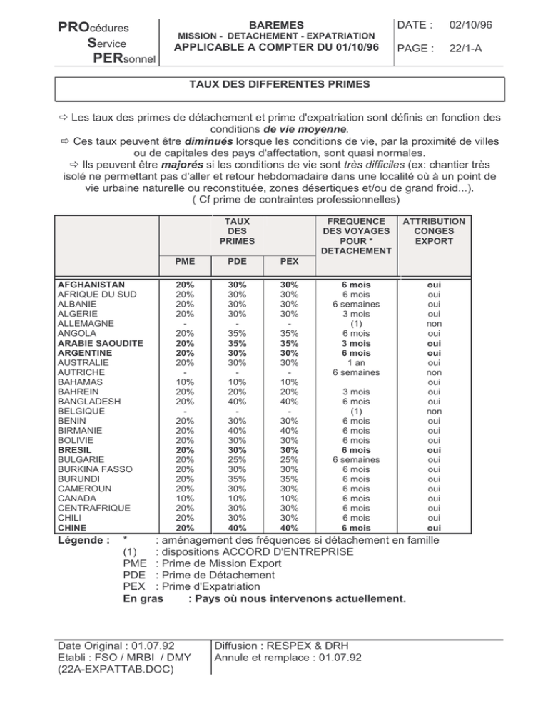 Taux des primes par pays