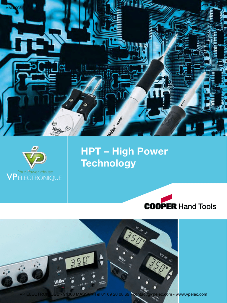MM-0008 HPT – High Power Technology VP ELECTRONIQUE - 91300 MASSY - Tel 01 69 20 08 69 - [email protected] - www.vpelec.com MM-0008 High Power Technology pour une efficacité optimale Quand la puissance rime avec finesse Jamais les défis dans un monde en évolution permanente comme la microélectronique n’ont été si complexes, et jamais la technologie n’a offert autant de solutions de pointe pour le montage et la réparation sur les circuits imprimés. La nouvelle génération Weller HPT (HighPower-Technologie) d’outils de brasage manuels, contrôlés par microprocesseur, allie puissance optimum et précision maximum pour répondre aux besoins de plus en plus sophistiqués de l’industrie électronique. La gamme Weller propose pour toutes les applications industrielles, une large sélection d’outils de brasage novateurs, simples d’utilisation et fiables. Ils proposent des fonctions indispensables tant aux utilisateurs novices que confirmés. Transfert thermique optimal à basses températures La technologie de pointe pour le tandem «sonde-élément chauffant» développée pour une conductivité thermique optimale, délivre une performance incomparable sur des surfaces réduites et aux températures les plus basses possibles pour réduire les risques de stress thermique sur les circuits ainsi que minimiser les risques de détérioration. Les fonctions intégrées à la nouvelle génération HPT (High-Power-Technologie) permettent d’augmenter la durée de vie des pannes et réduire le coût global du cycle de vie. 2 VP ELECTRONIQUE - 91300 MASSY - Tel 01 69 20 08 69 - [email protected] - www.vpelec.com MM-0008 Performance dynamique au meilleur coût global Le nouveau fer WP120 offre deux fois plus de puissance et d’efficacité dans un design élancé et ergonomique. Combinant un élément chauffant compact et efficace avec des pannes interchangeables, le WP120 garantit une performance dynamique au meilleur coût de fonctionnement. Le transfert rapide de la chaleur dans la panne est instantanément et précisément contrôlé par une électronique sophistiquée qui permet une récupération thermique optimum particulièrement sur les circuits à forte dissipation de chaleur. eau v u No u vea u o N VP ELECTRONIQUE - 91300 MASSY - Tel 01 69 20 08 69 - [email protected] - www.vpelec.com 3 MM-0008 High Power Technology plus design ergonomique Des systèmes conçus pour une efficacité maximum Pour supporter une large variété d’applications de brasage, Weller propose une gamme complète de pannes de haute qualité, conçues pour une performance supérieure tant en terme de chauffe rapide qu’efficacité thermique. Le micro fer High Power est équipé de la nouvelle «Advanced Sensor Technology» (la sonde de température est située dans la panne au plus près de la zone de travail), ce qui signifie que la performance de chauffe est similaire à une panne élémentchauffant. WP 120 Micro Fer à souder haute puissance (120W) Equipé de la Sonde Weller® Advanced Technology Montée en température très rapide Deux fois plus puissant et efficace qu’un fer à souder standard Meilleur rapport performance/coût d’utilisation grâce aux pannes de grande qualité et à faible coût. Parfaitement adapté aux grandes et difficiles brasures telles que sur les blindages ou sur les panneaux solaires. 4 Les Micro-Outils Weller (WMRP et WMRT) fonctionnent avec des pannes élémentchauffant qui combinent élément chauffant, sonde de température et panne en un seul composant garantissant un transfert thermique optimum. Changer les pannes est rapide et facile, ne nécessite pas d’outil spécifique. WP 80 Micro Fer à souder (80W) Montée en température très rapide Distance panne-main extrêmement courte (45mm) pour une meilleure ergonomie sous binoculaire par exemple. Parfaitement adapté aux brasures de petits composants VP ELECTRONIQUE - 91300 MASSY - Tel 01 69 20 08 69 - [email protected] - www.vpelec.com MM-0008 Augmenter la durée de vie avec les supports de sécurité Stop & Go Weller Stop Go Le système Stop & Go Weller augmente la durée de vie des pannes à braser tout en assurant un contrôle complet et optimisant les coûts de fonctionnement. La combinaison d’un bloc Weller intelligent et d’un support Stop & Go permet de réduire la température de la panne quand le fer est au repos, ce qui augmente la durée de vie de la panne. WMRP Micro Fer à souder (40W) Equipé de la sonde Weller® Advanced Technology Montée en température Ultra rapide Fonctionne avec une panne à élément chauffant et sonde intégrés pour un transfert thermique optimum. Temps de récupération minimisé De meilleurs résultats de brasage avec les kits de nettoyage Weller et la soudure sans plomb Les pannes devenues non mouillables doivent être nettoyées par un procédé approprié ! Ce n’est pas un problème en utilisant les kits de nettoyage des pannes Weller. Les pannes oxydées peuvent être réactivées en utilisant le «Tip Activator Weller», une brosse métal inox ou pour les cas les plus difficiles, la barre à polir. Utilisez le «Dry Cleaner» Weller standard pour débarrasser la panne des excédents du soudure tout en laissant une fine couche protégeant contre l’oxydation. Nettoyage des pannes Soudure sans plomb = Dry cleaner (utiliser les kits Weller WDC) Soudure avec plomb = Nettoyage humide (éponge) WMRT Micro Brucelles de Dessoudage (80W) Equipé de la sonde Weller® Advanced Technology Montée en température Ultra rapide Fonctionne avec deux pannes à élément chauffant et sonde intégrés pour un transfert thermique optimum. Temps de récupération minimisé Micro brucelles pour dessouder des compo sants CMS à deux côtés en une seule opération. Deux pannes parallèles ajustables Large choix de pannes à souder, voir la Brochure Weller des pannes à souder. VP ELECTRONIQUE - 91300 MASSY - Tel 01 69 20 08 69 - [email protected] - www.vpelec.com 5 MM-0008 