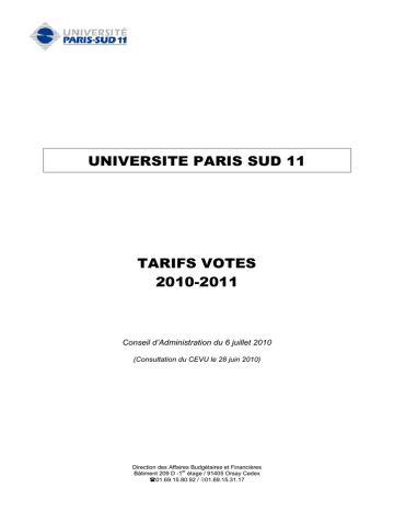Tarifs 2010-2011 VFCA060710 - Université Paris-Sud