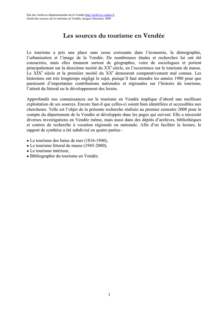 Guide des sources sur le tourisme en Vendée