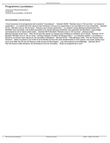 Programme louveteaux - Unité Scoute de Soumagne