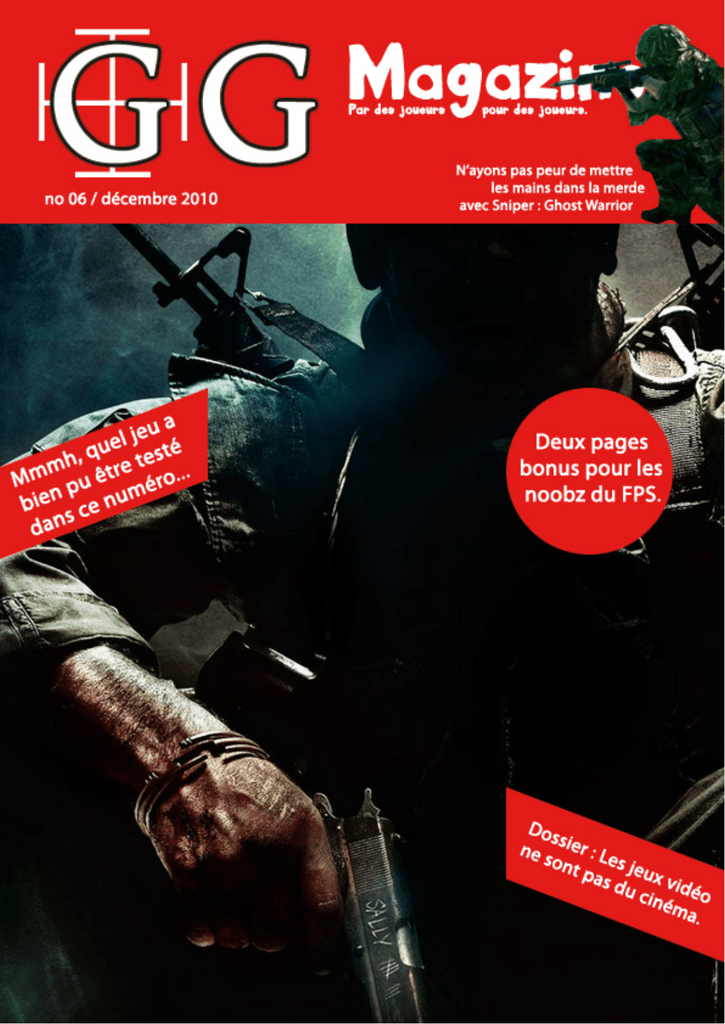 «ZOMFG !!§§§ Le GG Mag de décembre est tout petit ! Que l’on me rende la bande passante dépensée pour afficher ce torchon sur mon beau paycay !» Eh oh, c’est la crise hein. Trop de boulot, pas assez de jeux, pas le temps, toussa toussa. Donc bref voilà, ce mois-ci GG Mag subit un régime hardcore. Vous trouverez tout de même le test de Call of Duty Black Ops, cette bouse de Sniper : Ghost Warrior, un dossier d’aigri sur la mauvaise utilisation de la cinématographie dans les jeux vidéo, et enfin un dossier mégalomane à destination des n00bz du FPS. Pour vous venger de ce maigre contenu, vous pouvez toujours m’envoyer des cailloux ou des fleurs par mail à [email protected] ! Kiss à tous, saloperie de geeks. Dossier How to... Mes dernières expériences en jeu multijoueur m’ont permis de constater quelque chose : les joueurs actuels ne savent pas jouer. Mais vraiment. Il ne s’agit pas seulement là d’un constat fait par un gamer aigri qui se la pète, non, ce constat est basé sur des preuves, que je vais vous faire partager tout de suite. Tout a commencé sur Battlefield Bad Company 2. Cela faisait longtemps que je n’avais pas touché un jeu multi, je m’attendais donc à me faire lamentablement poutrer la tronche, d’autant que j’étais très mauvais sur Battlefield 2. Et puis là, surprise. Quelle que soit la classe choisie est après seulement quelques heures, j’atteins sans problème les hauteurs du classement (sur 32 joueurs). Même en Sniper, classe que j’ai joué la dernière fois dans un jeu en 2001, avec AvP 2. Bref, le niveau est désespérement bas. Parallèlement, je me penche sur le multi du Modern Warfare 2, et c’est encore pire. Après seulement deux heures de jeu, et sans même connaître les cartes, je me hisse sans problème sur la première marche du podium (c’était tellement facile que j’ai lâché le jeu après seulement quelques heures, ennuyeux à mourir). Alors bon, je joue aux FPS depuis plus de dix ans donc forcément j’ai un bon niveau, mais bourdayl pourquoi le niveau de mes adversaires est-il si bas ? Il existe évidemment de nombreux bons joueurs, mais si peu par rapport à la masse de low ! J’ai enfin été conforté dans mes craintes avec le multi de CoD Black Ops. Après plus de 80 heures de jeu et moult poutrage de noobz, mon constat est sans appel : les joueurs ne savent plus jouer. D’où ce petit dossier qui va rappeler quelques règles de bases (qu’il faut bien entendu adapter à chaque jeu) lorsque l’on joue en multi. Cela n’aura que peu d’intérêt pour les pros, qui ont chacun leurs petites techniques, mais ceux qui savent qu’au fond d’eux-mêmes se cache un noobzor from outer space y trouveront, j’espère, leur compte. Bouger Comme le disais mon maître ninja du 93, «rien de sert de camper, ça ne fait pas gagner». Et c’est vrai. Le mouvement est l’une des clés pour fragger comme un porc. Tomber sur le râble d’un ennemi par surprise, changer d’itinéraire à chaque respawn, c’est ça le jeu gagnant. Un gros campeur verra passer deux, trois pélos, puis se fera flinguer à tour de bras par des types furieux. Alors qu’un joueur se déplaçant en permanence multiplie à la fois les chance de trouver des adversaires mais aussi d’esquiver leurs balles. Il est donc globalement inutile de rager contre les campouzes, parce que de toute façon, un campeur ne gagne jamais. Sauter «La maladie du bouger bouger, on s’asseoit pas», a déclamé un célèbre groupe de zouk français. Et cette maxime s’applique aussi dans les jeux en multi. Enfin, pas tous. Dans certains, comme le vieux AvP 2, sauter n’apporte rien, en aucun cas. En effet, le saut rendait le personnage lent, lourd, et le stoppait presque, le transformant ainsi en cible d’entraînement. A l’inverse, dans un soft comme Red Faction, le saut, qui ne change que très légèrement la physique du personnage, est très utile pour surprendre l’adversaire et esquiver ses tirs. Enfin, en retrouve les jeux fast-paced (à jouabilité rapide) comme FEAR mais surtout Quake 3, où on peut (certains diront «on doit !») sauter dans tous les sens tout en conservant la maniabilité de son personnage intacte et donc se mouvoir aussi facilement dans les airs qu’à terre. Et, au milieu, on retrouve par exemple CoD Black Ops. C’est à dire les jeux où, bien utilisé, le saut s’avère mortel pour l’ennemi, mais mal utilisé peut se retourner contre vous. Pourquoi ? Parce que bien utilisé, on peut surprendre l’ennemi et esquiver ses tirs. Mais le gameplay implique que le personnage ralenti dans les airs, et ne peut plus tirer pendant quelques dixièmes de seconde lors de son atterrissage au sol, le rendant ainsi vulnérable. Bref, voici le moment que vous attendez tous : comment bien utiliser le saut ? Tout d’abord, en ne sautant pas sans raison. N’oubliez pas que quel que soit le type de jeu, la maniabilité en l’air est toujours moindre que celle au sol. Vitesse accélérée ou diminuée, mouvements moins précis, moins gérables... Vous êtes dans tous les cas vulnérables en l’air. Il faut donc sauter lorsque vous savez sur quoi vous tirez. Par exemple, si vous savez exactement qu’un nioob va passer se coin d’ici deux secondes, alors bondissez pour le surprendre. Si vous vous retrouvez pris dans un gunfight endiablé, sautez puis baissez vous, alternez les positions. Bref, sautez, mais pas trop. D’ailleurs, l’excès de saut est souvent très mal vu dans en multijoueur. Se baisser A mon sens, c’est le petit plus qui permet de dominer les autres joueurs lorsque l’on maîtrise toutes les autres composantes décrites dans ce dossier. Se baisser au bon moment permet d’éviter LA balle fatale, tandis que vous plomberez votre adversaire. Là encoren il ne faut pas se baisser n’importe comment. On voit souvent des noobz ou des types qui croient bien jouer parce qu’ils avancent baissé, pensan