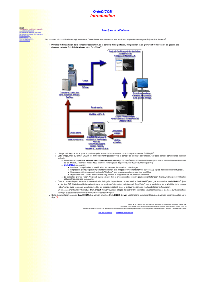 Ce document décrit l'utilisation du logiciel OrdoDICOM en liaison avec l'utilisation d'un matériel d'acquisition radiologique Fuji Medical Systems®