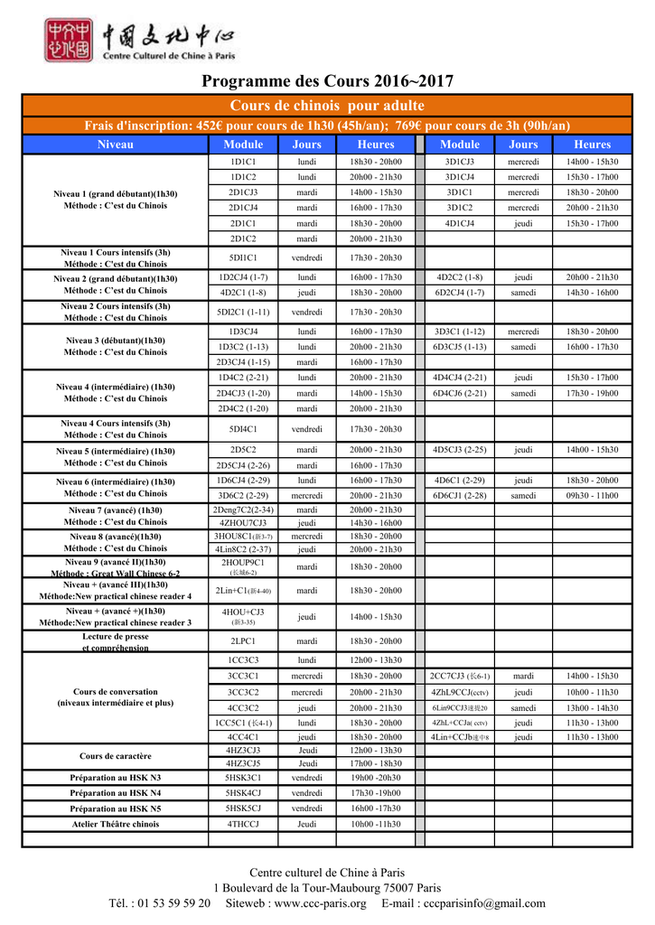 Programme des Cours 2016~2017 - Centre Culturel de Chine à Paris