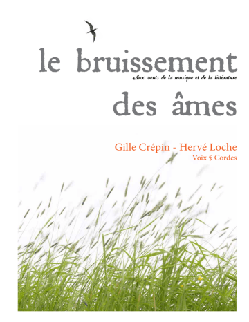 le bruissement des âmes Aux vents de la musique et de la littérature Gille Crépin - Hervé Loche Voix § Cordes Origine a ’est autour de la musique que Gille Crépin et Hervé Loche se sont rencontrés, il y a bientôt vingt cinq ans. Le premier, passionné par la guitare, ne ratait pas une occasion d’assister à un concert. Le second était déjà musicien professionnel et accompagnait divers chanteurs. Leur attirance mutuelle pour le jazz les avait réunis. Le second donnait alors des cours au premier. Et puis chacun a fait son chemin. Gille Crépin est devenu chanteur puis conteur et comédien. Il a trouvé ses marques dans le spectacle vivant autour des mots et de sa capacité d’interprétation. Hervé Loche est devenu chef de chœur et compositeur. Il a ouvert son horizon musical à d’autres sensibilités telle la musique classique du 20ème siècle. Les retrouvailles eurent lieu à l’occasion d’une nuit du conte à Gardanne dont Gille Crépin assurait la direction artistique en août 2008. Il cherche un musicien. Il le veut sensible à toutes les musiques, ouvert au monde de la parole. Soudain la solution est là, évidente. Il est certain qu’Hervé sera celui qu’il lui faut. Pourtant, depuis leur ancienne rencontre, il a connu de nombreux musiciens, mais aucun, comme celui qu’il n’a pas vu depuis si longtemps, n’est animé de cette lumière intérieure. Tout se mettra en place de façon évidente en quelques répétitions, et cette nuit du mois d’août à Gardanne restera mémorable. Aujourd’hui, les deux complices n’ont guère envie d’abandonner leur nouveau départ. Un projet est né de leurs dernières rencontres. Autour de la musique, bien sûr. Car la musique est le bruissement des âmes. Le projet Il s’agit de marier des textes qui évoquent la musique, avec des œuvres musicales du 20ème siècle dont le pouvoir d’évocation est remarquable. Pour une fois tout est au service de la musique qui n’est pas seulement accompagnatrice des mots. Des pièces de Heitor Villa-Lobos, Léo Brouwer, Arnaud Dumont ou Ralph Towner sont visitées et Hervé Loche joue également ses compositions personnelles. Pour les textes, Nicolas Bouvier, Marcel Proust, Alessandro Baricco ou Federico Garcia Lorca, apportent des éclairages différents sur le rapport des humains au monde musical. Gille Crépin a écrit pour l’occasion deux adaptations de contes populaires, dont une version contemporaine du joueur de flûte de Hamelin. Il s’agit, en quelque sorte, d’un “concert littéraire” acoustique ou sonorisé selon les lieux. La mise en forme est sobre. Les deux complices sont présents sur scène en permanence et soutiennent, par leur présence, la prestation de l’autre. Des pièces vocales à deux voix viennent ponctuer la représentation. La musique souvent me prend comme une mer ! Vers ma pâle étoile, Sous un plafond de brume ou dans un vaste éther, Je mets à la voile ; La poitrine en avant et les poumons gonflés Comme de la toile J’escalade le dos des flots amoncelés Que la nuit me voile ; Je sens vibrer en moi toutes les passions D’un vaisseau qui souffre ; Le bon vent, la tempête et ses convulsions Sur l’immense gouffre Me bercent. D’autres fois, calme plat, grand miroir De mon désespoir ! La musique Charles Baudelaire Quelques élements de textes : On peut citer dans le répertoire, qui reste ouvert à de nouvelles trouvailles, plusieurs types de textes, tel celui de Nicolas Bouvier qui se trouve être à l’origine de l’idée des deux complices : De tous les remèdes que cette planète bleue où nous vivons nous offre, la musique est le seul à être également partagé. Peu importe qu’on soit de ceux qui la donnent ou qui la reçoivent. Le hibou et la baleine Il serait regrettable d’ignorer les fulgurances de Federico Garcia Lorca sur le flamenco et son indispensable “duende”: Le duende opère sur le corps de la danseuse comme le vent avec le sable. Son pouvoir magique peut transformer une jeune fille en paralytique de la lune, ou colorer de rougeurs adolescentes une vieille guenille qui demande l’aumône dans les bistros à vin ; à partir d’une chevelure, il fait naître un parfum de port nocturne et, à tous moments, il agit sur les bras de la danseuse grâce à des expressions qui sont les sources de la danse depuis le début des temps. Théorie et jeu du duende Plus surprennant, un texte de Marcel Proust qui semble si proche de notre époque. Détestez la bien plus, remplie du nulle dans mauvaise musique, ne la méprisez pas. Comme on la joue, la chante bien plus passionnément que la bonne, bien plus qu’elle s’est peu à peu rêve et des larmes des hommes. Qu’elle vous soit par là vénérable. Sa place, l’histoire de l’Art, est immense dans l’histoire sentimentale des sociétés. Eloge de la mauvaise musique, extrait de Les plaisirs et les jours Du côté des textes narratifs où la musique est partie prenante, on trouve un récit d’Alessandro Barrico : A présent, personne n’est obligé de le croire, et pour être exact, je n’y croirais pas moi-même si on le racontait, mais la vérié vraie c’est que ce piano commença à glisser, sur le parquet de la salle de bal, et nous derrière lui, avec Novecento qui jouait, sans détacher son regard des touches, il avait l’air ailleurs, et le piano suivait les vagues, il s’en allait d’un côté, revenait de l’autre, puis tournait sur lui-même, et filait droit sur les baies vitrées, puis àun cheveu de la vitre, il s’arrêtait et recommençait à glisser dans doucement l’autre sens, je veux dire, c’était come si l’Océan le berçait, et nous avec, moi je n’y comprenais rien, et Novecento jouait, il ne cessait pas de jouer, et c’était clair que ce piano, il ne se contentait pas de jouer dessus mais il le conduisait, vous comprenez ? Novecento Pour finir ce survol non exhaustif des textes du spectacle, voici quelques cita