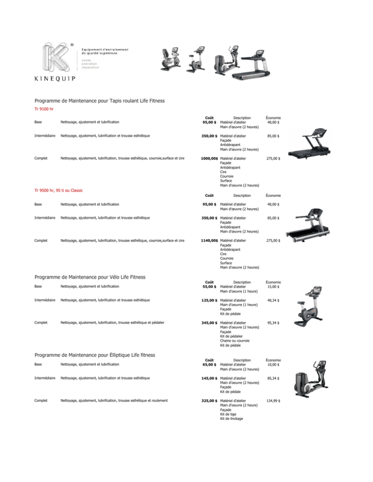 PROGRAMME DE MAINTENANCE POUR TAPIS ROULANT LIFE