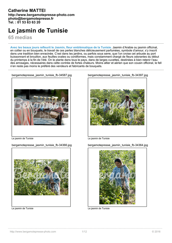 Catherine MATTEI http://www.bergamotepresse-photo.com [email protected] Tel. : 01 53 63 63 20 Le jasmin de Tunisie 65 medias Avec les beaux jours refleurit le Jasmin, fleur emblématique de la Tunisie. Jasmin d’Arabie ou jasmin officinal, en collier ou en bouquets, le travail de ces perles blanches délicieusement parfumées, symbole d’amour, s’y inscrit dans une tradition bien enracinée. C’est dans les jardins, ou parfois sous serre, que l’on croise cet arbuste au port buissonnant et brouillon, aux feuilles ovales ou cordiformes, mais constamment chargé de fleurs odorantes du début du printemps à la fin de l’été. On le plante dans tous le pays, dans de larges cuvettes, destinées à bien retenir l’eau des arrosages, nécessaires dans cette contrée de fortes chaleurs. Moins altier et aérien que son cousin officinal, le fell n’en reste pas moins le préféré des vendeurs et fabricants de bouquets. bergamotepresse_jasmin_tunisie_fb-34587.jpg bergamotepresse_jasmin_tunisie_fb-34397.jpg Le jasmin de Tunisie Le jasmin de Tunisie bergamotepresse_jasmin_tunisie_fb-34366.jpg bergamotepresse_jasmin_tunisie_fb-34364.jpg Le jasmin de Tunisie Le jasmin de Tunisie http://www.bergamotepresse-photo.com 1/12 © 2016 bergamotepresse_jasmin_tunisie_fb-34353.jpg bergamotepresse_jasmin_tunisie_fb-34408.jpg Le jasmin de Tunisie Le jasmin de Tunisie bergamotepresse_jasmin_tunisie_fb-34389.jpg bergamotepresse_jasmin_tunisie_fb-34385.jpg Le jasmin de Tunisie Le jasmin de Tunisie bergamotepresse_jasmin_tunisie_fb-34383.jpg bergamotepresse_jasmin_tunisie_fb-34381.jpg Le jasmin de Tunisie Le jasmin de Tunisie http://www.bergamotepresse-photo.com 2/12 © 2016 bergamotepresse_jasmin_tunisie_fb-34375.jpg bergamotepresse_jasmin_tunisie_fb-34362.jpg Le jasmin de Tunisie Le jasmin de Tunisie bergamotepresse_jasmin_tunisie_fb-34357.jpg bergamotepresse_jasmin_tunisie_fb-34351.jpg Le jasmin de Tunisie Le jasmin de Tunisie bergamotepresse_jasmin_tunisie_fb-34452.jpg bergamotepresse_jasmin_tunisie_fb-34458.jpg Le jasmin de Tunisie Le jasmin de Tunisie http://www.bergamotepresse-photo.com 3/12 © 2016 bergamotepresse_jasmin_tunisie_fb-34456.jpg bergamotepresse_jasmin_tunisie_fb-34454.jpg Le jasmin de Tunisie Le jasmin de Tunisie bergamotepresse_jasmin_tunisie_fb-34523.jpg bergamotepresse_jasmin_tunisie_fb-34534.jpg Le jasmin de Tunisie Le jasmin de Tunisie bergamotepresse_jasmin_tunisie_fb-34539.jpg bergamotepresse_jasmin_tunisie_fb-34443.jpg Le jasmin de Tunisie Le jasmin de Tunisie http://www.bergamotepresse-photo.com 4/12 © 2016 bergamotepresse_jasmin_tunisie_fb-34441.jpg bergamotepresse_jasmin_tunisie_fb-34594.jpg Le jasmin de Tunisie Le jasmin de Tunisie bergamotepresse_jasmin_tunisie_fb-34597.jpg bergamotepresse_jasmin_tunisie_fb-34589.jpg Le jasmin de Tunisie Le jasmin de Tunisie bergamotepresse_jasmin_tunisie_fb-34584.jpg bergamotepresse_jasmin_tunisie_fb-34559.jpg Le jasmin de Tunisie Le jasmin de Tunisie http://www.bergamotepresse-photo.com 5/12 © 2016 bergamotepresse_jasmin_tunisie_fb-34546.jpg bergamotepresse_jasmin_tunisie_fb-34541.jpg Le jasmin de Tunisie Le jasmin de Tunisie bergamotepresse_jasmin_tunisie_fb-34521.jpg bergamotepresse_jasmin_tunisie_fb-34518.jpg Le jasmin de Tunisie Le jasmin de Tunisie bergamotepresse_jasmin_tunisie_fb-34513.jpg bergamotepresse_jasmin_tunisie_fb-34508.jpg Le jasmin de Tunisie Le jasmin de Tunisie http://www.bergamotepresse-photo.com 6/12 © 2016 bergamotepresse_jasmin_tunisie_fb-34506.jpg bergamotepresse_jasmin_tunisie_fb-34503.jpg Le jasmin de Tunisie Le jasmin de Tunisie bergamotepresse_jasmin_tunisie_fb-34502.jpg bergamotepresse_jasmin_tunisie_fb-34501.jpg Le jasmin de Tunisie Le jasmin de Tunisie bergamotepresse_jasmin_tunisie_fb-34496.jpg bergamotepresse_jasmin_tunisie_fb-34491.jpg Le jasmin de Tunisie Le jasmin de Tunisie http://www.bergamotepresse-photo.com 7/12 © 2016 bergamotepresse_jasmin_tunisie_fb-34489.jpg bergamotepresse_jasmin_tunisie_fb-34481.jpg Le jasmin de Tunisie Le jasmin de Tunisie bergamotepresse_jasmin_tunisie_fb-34473.jpg bergamotepresse_jasmin_tunisie_fb-34472.jpg Le jasmin de Tunisie Le jasmin de Tunisie bergamotepresse_jasmin_tunisie_fb-34469.jpg bergamotepresse_jasmin_tunisie_fb-34466.jpg Le jasmin de Tunisie Le jasmin de Tunisie http://www.bergamotepresse-photo.com 8/12 © 2016 bergamotepresse_jasmin_tunisie_fb-34464.jpg bergamotepresse_jasmin_tunisie_fb-34462.jpg Le jasmin de Tunisie Le jasmin de Tunisie bergamotepresse_jasmin_tunisie_fb-34460.jpg bergamotepresse_jasmin_tunisie_fb-34439.jpg Le jasmin de Tunisie Le jasmin de Tunisie bergamotepresse_jasmin_tunisie_fb-34437.jpg bergamotepresse_jasmin_tunisie_fb-34435.jpg Le jasmin de Tunisie Le jasmin de Tunisie http://www.bergamotepresse-photo.com 9/12 © 2016 bergamotepresse_jasmin_tunisie_fb-34433.jpg bergamotepresse_jasmin_tunisie_fb-34432.jpg Le jasmin de Tunisie Le jasmin de Tunisie bergamotepresse_jasmin_tunisie_fb-34431.jpg bergamotepresse_jasmin_tunisie_fb-34428.jpg Le jasmin de Tunisie Le jasmin de Tunisie bergamotepresse_jasmin_tunisie_fb-34425.jpg bergamotepresse_jasmin_tunisie_fb-34423.jpg Le jasmin de Tunisie Le jasmin de Tunisie http://www.bergamotepresse-photo.com 10/12 © 2016 bergamotepresse_jasmin_tunisie_fb-34421.jpg bergamotepresse_jasmin_tunisie_fb-34419.jpg Le jasmin de Tunisie Le jasmin de Tunisie bergamotepresse_jasmin_tunisie_fb-34415.jpg bergamotepresse_jasmin_tunisie_fb-34329.jpg Le jasmin de Tunisie Le jasmin de Tunisie bergamotepresse_jasmin_tunisie_fb-34324.jpg bergamotepresse_jasmin_tunisie_fb-34289.jpg Le jasmin de Tunisie Le jasmin de Tunisie http://www.bergamotepresse-photo.com 11/12 © 2016 bergamotepresse_jasmin_tunisie_fb-34288.jpg Le jasmin de Tunisie http://www.bergamotepresse-photo.com 12/12 © 2016