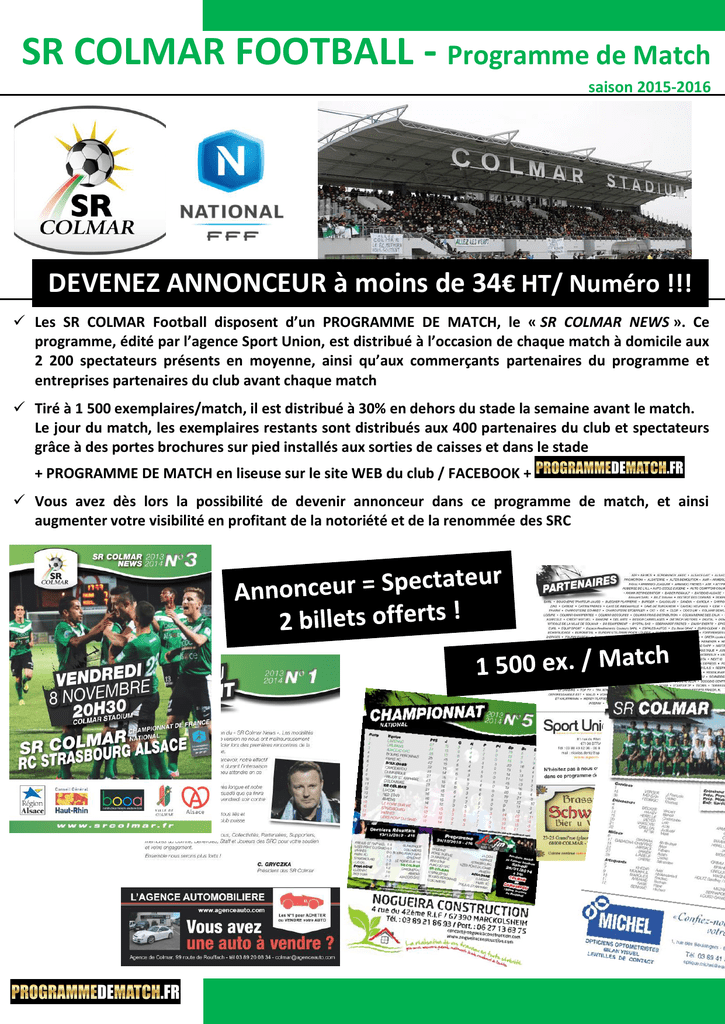 SR COLMAR FOOTBALL - Programme de Match