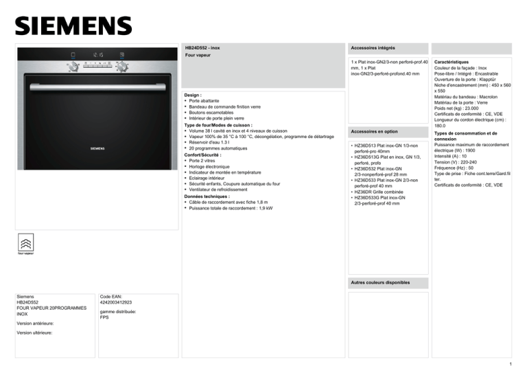 Siemens HB24D552 FOUR VAPEUR 20PROGRAMMES INOX