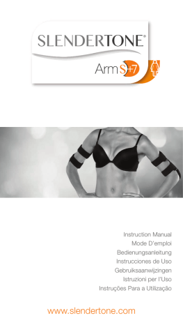 Instruction Manual Mode D’emploi Bedienungsanleitung Instrucciones de Uso Gebruiksaanwijzingen Istruzioni per l'Uso Instruções Para a Utilização www.slendertone.com BIENVENUE Toutes nos félicitations pour l achat de l ACCESSOIRE SLENDERTONE ARMS. Veuillez lire le mode d emploi dans son intégralité avant d utiliser cet appareil de tonification pour les bras. ACCESSOIRE SLENDERTONE ARMS est basé sur la technologie d électrostimulation musculaire (EMS) permettant de faire travailler les muscles l arri re des bras. Un signal électrique est envoyé vers les muscles triceps qui se contractent. Pour plus de confort, nous vous conseillons d utiliser votre ACCESSOIRE SLENDERTONE ARMS chez vous, en position assise. Utilisez votre ACCESSOIRE SLENDERTONE ARMS pendant 10 à 20 minutes, 5 fois par semaine. Au bout de 4-6 semaines, vous pourrez constater les résultats suivants : • Vos bras sont plus toniques et redessinés • ous vous sentez plus l aise en débardeur ou en robe Pour optimiser les résultats, nous vous recommandons d utiliser l ACCESSOIRE SLENDERTONE ARMS dans le cadre d un régime équilibré et en complément d exercice physique. ACCESSOIRE SLENDERTONE ARMS est un appareil d électrostimulation qui vous permettra de cibler vos triceps et de remodeler vos bras. Il peut également être utilisé, sous surveillance médicale, dans le cadre d un programme de rééducation, la suite d une inactivité ou d une déficience musculaire. SERVICE CONSOMMATEUR Si vous rencontrez des di cultés lors de l utilisation de votre appareil ACCESSOIRE SLENDERTONE ARMS ou que vous avez des questions, contactez notre service consommateur SLENDERTONE : France International : +353 94 902 9936 Email : [email protected] www.slendertone.fr RECOMMANDATIONS • Utilisez votre appareil en position assise et détendue, les bras lég rement repliés et poses sur vos genoux. • Ne relevez pas les bras pendant la séance, ce qui pourrait rendre l exercice ine cace et s avérer inconfortable. • N utilisez pas votre ACCESSOIRE SLENDERTONE ARMS si vous êtes en train de faire autre chose avec vos bras ou vos mains. • Vos bras sont susceptibles de faire des mouvements involontaires pendant la séance. • Tenez la télécommande dans vos mains pendant toute la durée de la séance. • Veillez à ne pas trop serrer les sangles autour de vos bras. • Si les fils des accessoires sont endommagés ou dénudés, remplacez-les immédiatement. • N utilisez votre ACCESSOIRE SLENDERTONE ARMS qu une seule fois par jour. 2 CONTENU DU PACK ACCESSOIRE BRAS 6 4 5 3 Français 1 2 Ci-dessus et ci-apr s le détail du contenu du pac ACCESSOIRE SLENDERTONE ARMS. Le Pack accessoire ne contient ni télécommande, ni chargeur. 1. Accessoires pour bras ( x 2 ) : es accessoires sont fixer autour des bras l aide de sangles. 2. Sangles ( x 4 ) : es sangles maintiennent les accessoires en place et s adaptent un tour de bras compris entre 22 et 37 cm. 3. Connecteur de la télécommande : Cet élément permet de raccorder la télécommande aux accessoires. érifiez le raccordement avant toute utilisation. IMPORTANT: Ne déconnectez pas les accessoires avant d avoir éteint la télécommande. 4. Lot de quatre électrodes adhésives : lectrodes adhésives placer l intérieur des accessoires avant utilisation. orsque vous placez les accessoires autour de vos bras, celles-ci doivent être en contact avec la peau afin de garantir la stimulation. 5. Documentation : Deux manuels sont votre disposition un manuel d utilisation détaillé et un guide de démarrage rapide pour découvrir les fonctions de votre ACCESSOIRE SLENDERTONE ARMS. 6. Pochette SLENDERTONE : Glissez votre ACCESSOIRE SLENDERTONE ARMS dans sa pochette de rangement entre deux séances de tonification. REMARQUE : Vous avez besoin de la télécommande fournie avec votre SLENDERTONE ABS ou votre SLENDERTONE BOTTOM pour faire fonctionner cet accessoire pour les bras. Découvrez tous nos produits sur www.slendertone.fr ou appelez-nous au 0810 347 450. 3 COMMENT MARCHE LA TÉLÉCOMMANDE ? 1. Bouton Marche/Arrêt ( ) Appuyez sur ce bouton et maintenez-le pendant 2 secondes pour allumer ou éteindre la télécommande. ous pouvez également mettre l exercice en pause en appu ant bri vement sur ce bouton. ÉCRAN DE LA TÉLÉCOMMANDE 2. Augmentation de l’intensité de tonification ( ) Appuyez sur ces boutons et maintenez-les pour augmenter l intensité de l exercice. e bouton droit commande l accessoire marqué R. Le bouton gauche commande l accessoire marqué L. 1. 4. 2. 3. Réduire l’intensité de la séance ( ) Pressez et maintenez ces boutons enfoncés pour réduire l intensité du signal envo é vers l un ou l autre bras. 5. 4. Bouton de programmation ( P ) Appu ez sur ce bouton pour sélectionner le programme de tonification que vous souhaitez utiliser. Il existe 3 programmes au total, expliqués ultérieurement dans ce mode d emploi (page ). 5. Bouton d’information ( i ) Appuyez sur ce bouton pour afficher les informations relatives à votre entraînement, par exemple l intensité maximale de la séance en cours ou de la séance précédente et le nombre de séances que vous avez réalisées. ÉCRAN DE L’UNITÉ Intensité de la stimulation côté gauche. Intensité de la stimulation côté droite. Compte rebours de la séance en cours. A chage des messages d erreur (voir page 9). S a che lorsque l exercice est en pause). Indique que le son est désactivé. Le verrouillage clavier est activé, vous ne pouvez pas changer accidentellement les niveaux d intensité ou le programme. Ce s mbole indique un mauvais contact entre la télécommande et l appareil ou entre les électrodes et la peau (informations détaillées en page 11). Affiche le niveau de la batterie. Nombre de séances réalisées. A che le programme en cours d exécution ( ). Ce s mbole s a che pendant chaque phase de contraction. Intensité maximale atteinte au cours de la séance passée/actuelle. 4 3.