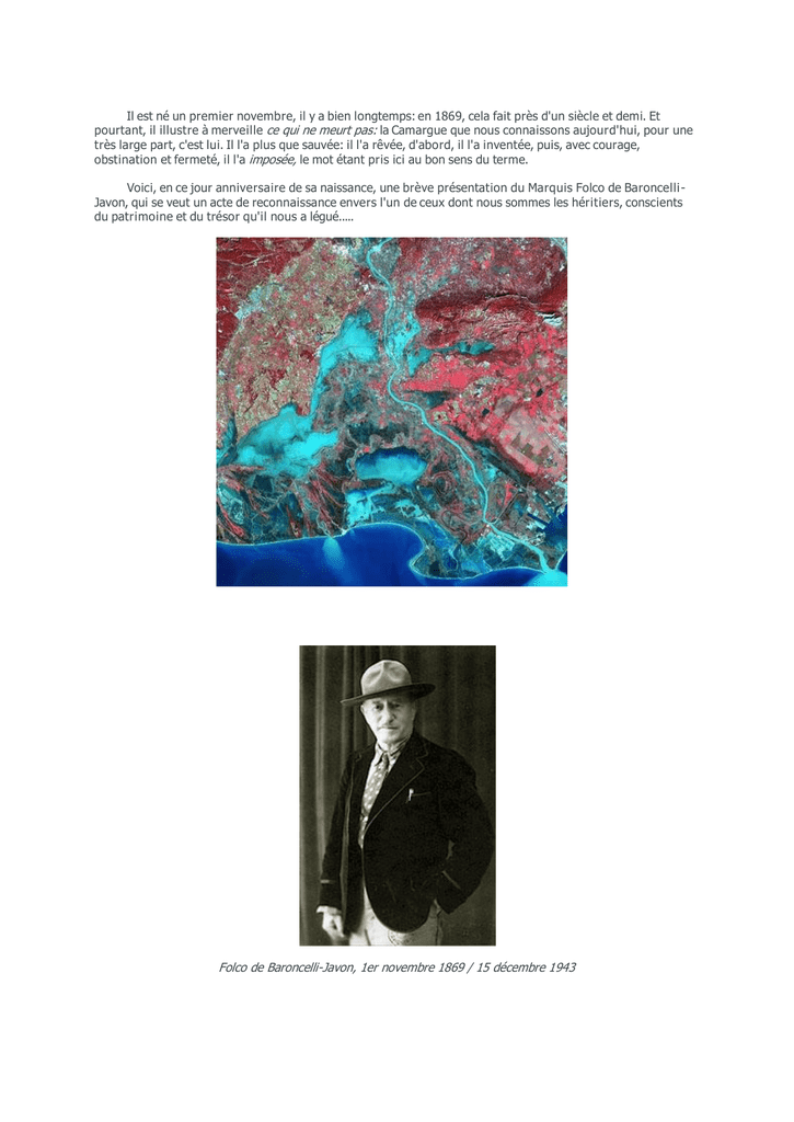 Voici, en ce jour anniversaire de sa naissance, une brève présentation du Marquis Folco de Baroncelli Javon, qui se veut un acte de reconnaissance envers l'un de ceux dont nous sommes les héritiers, conscients