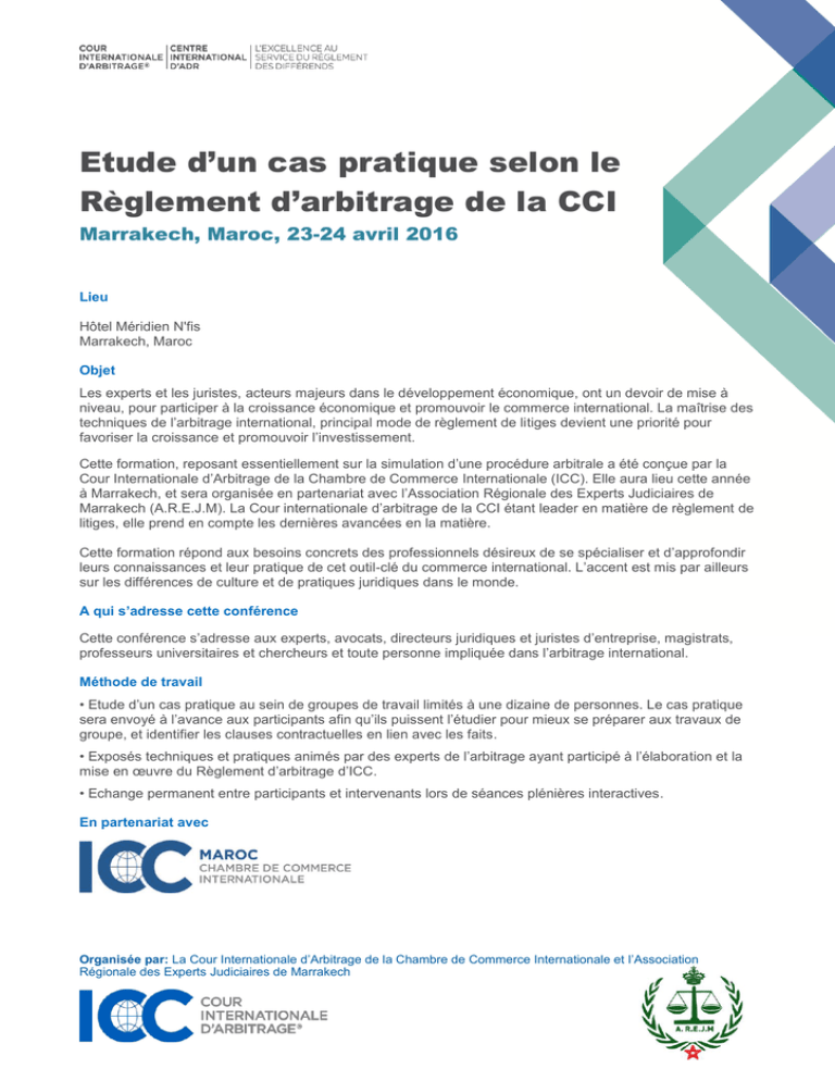 Etude d`un cas pratique selon le Règlement d`arbitrage de la CCI