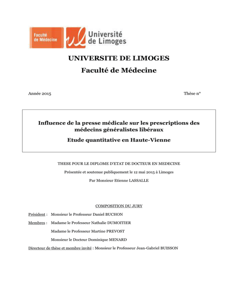 UNIVERSITE DE LIMOGES Faculté de Médecine