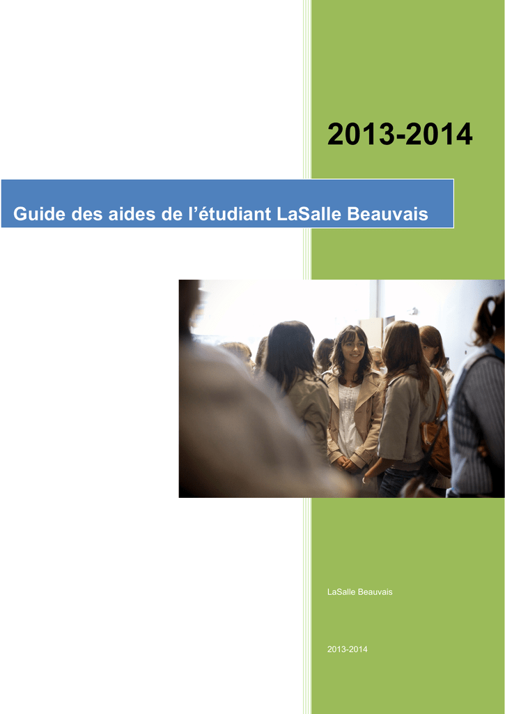 2013-2014 Guide des aides de l’étudiant LaSalle Beauvais LaSalle Beauvais 2013-2014 GUIDE DES AIDES DE L’ETUDIANT LASALLE BEAUVAIS (2/11)Version du 23/01/2014 Document non contractuel ______________________________ SOMMAIRE I - FINANCER VOTRE SCOLARITÉ Ā LASALLE BEAUVAIS • • • • Bourse de l’enseignement supérieur sur critères sociaux de l’Etat Bourse au mérite à l’attention des élèves boursiers Aides du Conseil Régional de Picardie : • Bourse de démocratisation du Conseil Régional de Picardie • Bourse sociale régionale échelon 0 • Aide à la Santé des Etudiants • Aide régionale à la restauration des étudiants Dispositifs complémentaires pour les étudiants en grande difficulté • Les bourses et prêts d’honneur de la Fondation Jean-Baptiste Gagne • Le Fonds National d’Aide d’Urgence (FNAU) II - FINANCER VOTRE LOGEMENT • PAGE 9 Bourse de séjour d’études à l’étranger Erasmus de l’Union Européenne Bourse de séjour d’études à l’étranger Philéas Séjour du Conseil Régional de Picardie V - FINANCER VOS DEPLACEMENTS DOMICILE-ETUDES • PAGES 8 ET 9 Bourse de stage à l’étranger du Ministère de l’Agriculture Bourse de stage à l’étranger Philéas Stage du Conseil Régional de Picardie Bourse de stage à l’étranger Erasmus Stage de l’Union Européenne IV - FINANCER VOS SEJOURS D’ETUDES Ā L’ETRANGER • • PAGE 7 Les aides au logement III - FINANCER VOS STAGES Ā L’ETRANGER • • • PAGE 3 A 7 Picardie Pass’ Etudes du Conseil Régional de Picardie PAGE 11 GUIDE DES AIDES DE L’ETUDIANT LASALLE BEAUVAIS (3/11)Version du 23/01/2014 Document non contractuel ______________________________ I - FINANCER VOTRE SCOLARITÉ Ā LASALLE BEAUVAIS 1. Bourse de l’enseignement supérieur sur critères sociaux de l’Etat Objectif : La bourse sur critères sociaux de l'enseignement supérieur est destinée à permettre à leurs bénéficiaires d’entreprendre, à la fin de leurs études secondaires, des études supérieures, auxquelles, sans cette aide, ils auraient été contraints de renoncer en raison de leur situation familiale ou matérielle. Bénéficiaires : Les étudiants inscrits dans un établissement d’enseignement supérieur public ou privé et dans une formation habilitée à recevoir des boursiers Conditions à remplir : • • • être âgé de moins de 28 ans au 1er octobre de l’année universitaire pour une première demande de bourse ; à compter de l’âge de 28 ans, les étudiants ne doivent pas interrompre leurs études pour continuer à bénéficier d’une bourse être de nationalité française ou titulaire de la carte de réfugié politique délivrée par l’OFPRA ou, sous certaines conditions, ressortissants de l’Union Européenne (pour les autres nationalités, l’étudiant doit bénéficier d’une carte de résident, être domicilié en France depuis au moins deux ans) ; répondre aux conditions d’assiduité aux cours, aux travaux pratiques ou dirigés et aux stages obligatoires, de présence aux examens, et de scolarité fixées par le dispositif de la bourse de cycle. Modalités, montant et forme de l’intervention : Les bourses sont attribuées en fonction des ressources des parents et des charges de l'étudiant et de ses parents. Un barème national définit les montants correspondants aux différentes situations. Echelon Echelon 0 1 Echelon 0 bis Echelon 1 Echelon 2 Echelon 3 Echelon 4 Echelon 5 Echelon 6 Echelon 7 Montants indicatifs 2013/2014 0€ 1 000 € 1 653 € 2 490 € 3 190 € 3 889 € 4 465 € 4 735 € 5 500 € La bourse est attribuée par le Ministère de l’Agriculture et de la Pêche pour les étudiants inscrits dans les filières Agriculture et Alimentation & Santé 1 Exonération des droits de sécurité sociale GUIDE DES AIDES DE L’ETUDIANT LASALLE BEAUVAIS (4/11)Version du 23/01/2014 Document non contractuel ______________________________ Instruction, décision et suivi : C'est le Directeur Régional de l'Alimentation, de l’Agriculture et de la Forêt de Picardie qui prononce l'attribution d'une bourse après avis de la Commission régionale d'attribution des bourses sur critères sociaux. Informations pratiques : Le dossier est à télécharger lors de l’inscription en ligne et à retourner avec les pièces justificatives à LaSalle Beauvais pour la mi-août. La bourse est attribuée par le CROUS pour les étudiants inscrits dans la filière Géologie La demande de bourse se fait par un seul dossier, le D.S.E. (dossier social étudiant) sur internet uniquement, sur le site du CROUS de l’académie où vous êtes scolarisé au moment de votre demande. Dossier à remplir du 15 janvier au 30 avril 2014. Comment savoir si vous êtes boursier de l’enseignement supérieur sur critères sociaux ? Utiliser la simulation proposée sur le site educagri.fr afin d'évaluer l'utilité de faire une démarche de demande de bourse d’enseignement supérieur sur critères sociaux : http://www.simulbourses.educagri.fr ou sur le site Internet du CNOUS : http://www.cnous.fr 2. Bourse au mérite à l’attention des élèves boursiers LaSalle Beauvais et la Région Picardie proposent à tous les étudiants primo entrants boursiers d’Etat une prise en charge totale ou partielle des frais de scolarité sous conditions : - - - Mention Très Bien au diplôme qui leur a permis d’intégrer LaSalle Beauvais : gratuité des frais de scolarité en 1re année, 50% pris en charge en 2e année sous conditions (pour les étudiants intégrant l’école en 2e année, la bourse au mérite sera attribuée pour une année seulement, les étudiants intégrant l’école en 3e année ne pourront prétendre à cette aide) ; Mention Bien au diplôme qui leur a permis d’intégrer LaSalle Beauvais : 50% des frais de scolarité gratuits en 1re année, 25% pris en charge en 2e année sous conditions (pour les étudiants intégrant l’école en 2e année, la bours